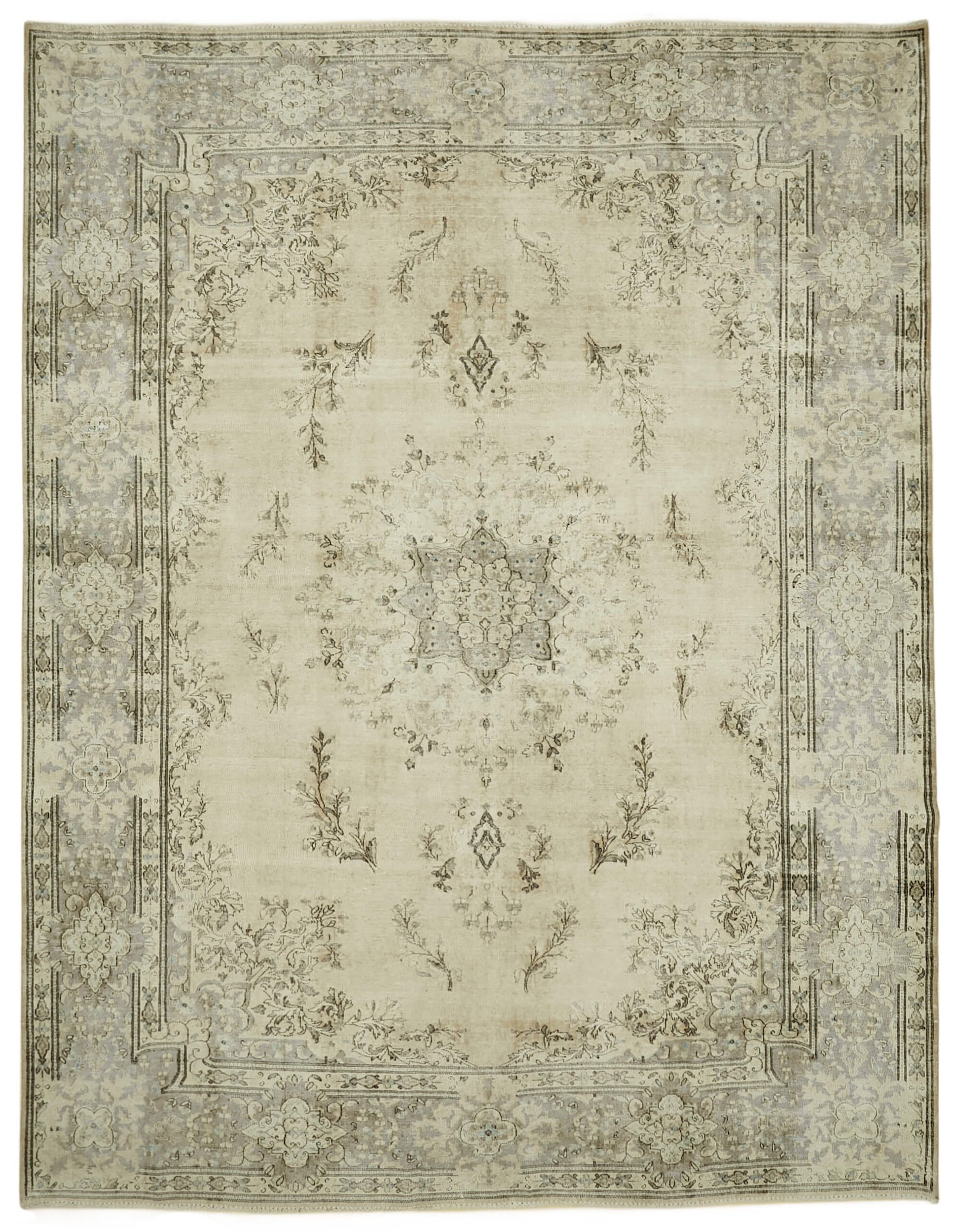 Discover the timeless elegance of our exquisite handwoven rug, a masterpiece that brings a touch of sophistication to any space. Measuring an impressive 13'1'' (400 cm) in length and 10'1'' (308 cm) in width, this rug is crafted with a blend of cotton and wool, ensuring durability and comfort. With an age range of 30-40 years, it carries a rich history and unique character. The rug's thickness of approximately 0.20'' (5.00 mm) adds a plush feel underfoot, while its subtle beige tones create a serene and inviting atmosphere.
