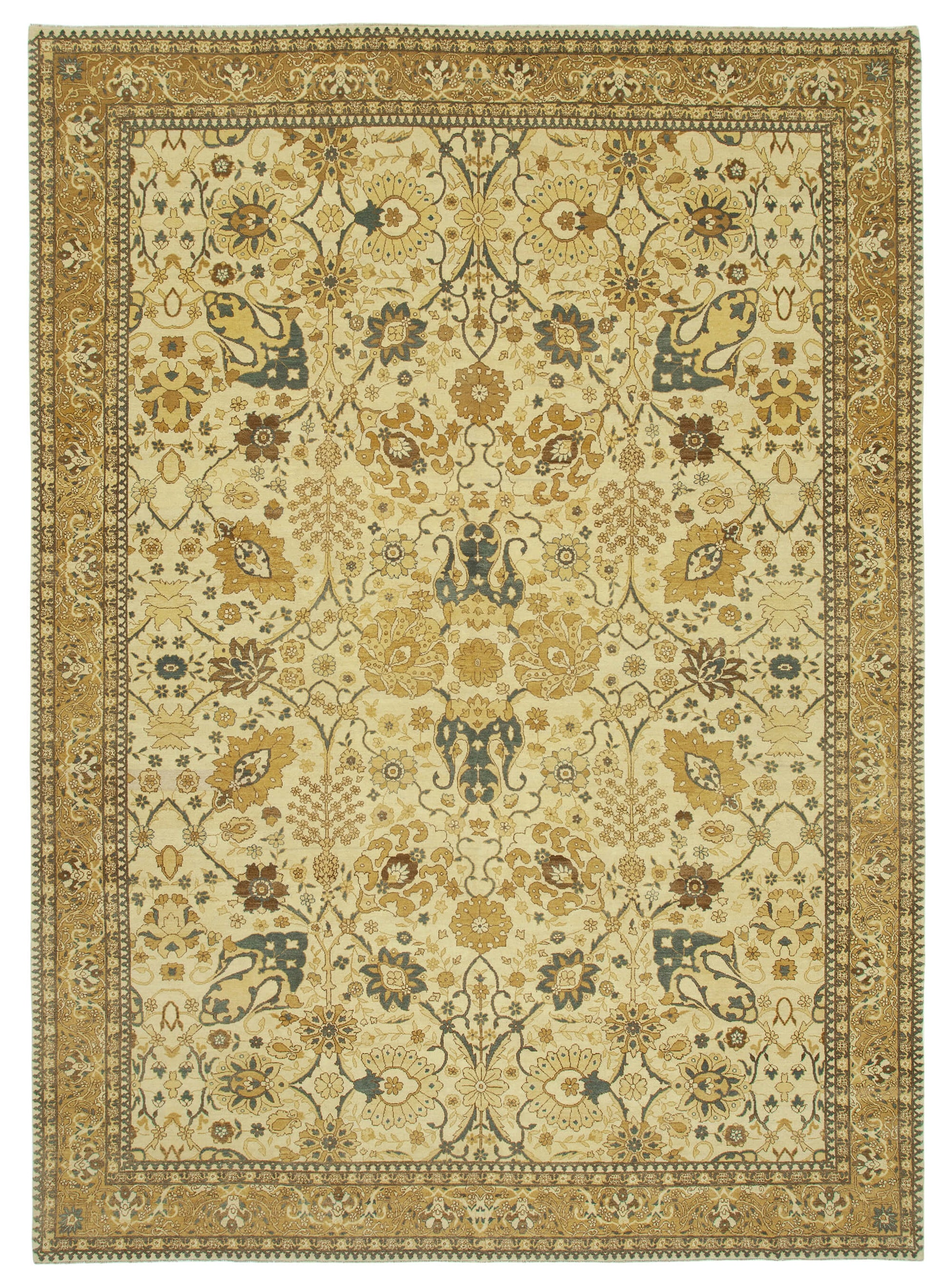 The intricate design of this rug features a harmonious blend of beige and earthy tones, creating a warm and inviting atmosphere. The detailed floral and geometric patterns are a testament to the skill and artistry of the weavers. The cotton and wool weft and warp ensure a sturdy construction, while the subtle color palette allows it to seamlessly integrate into various decor styles. Whether placed in a living room, dining area, or bedroom, this rug serves as a stunning focal point that enhances the aesthetic appeal of your space.