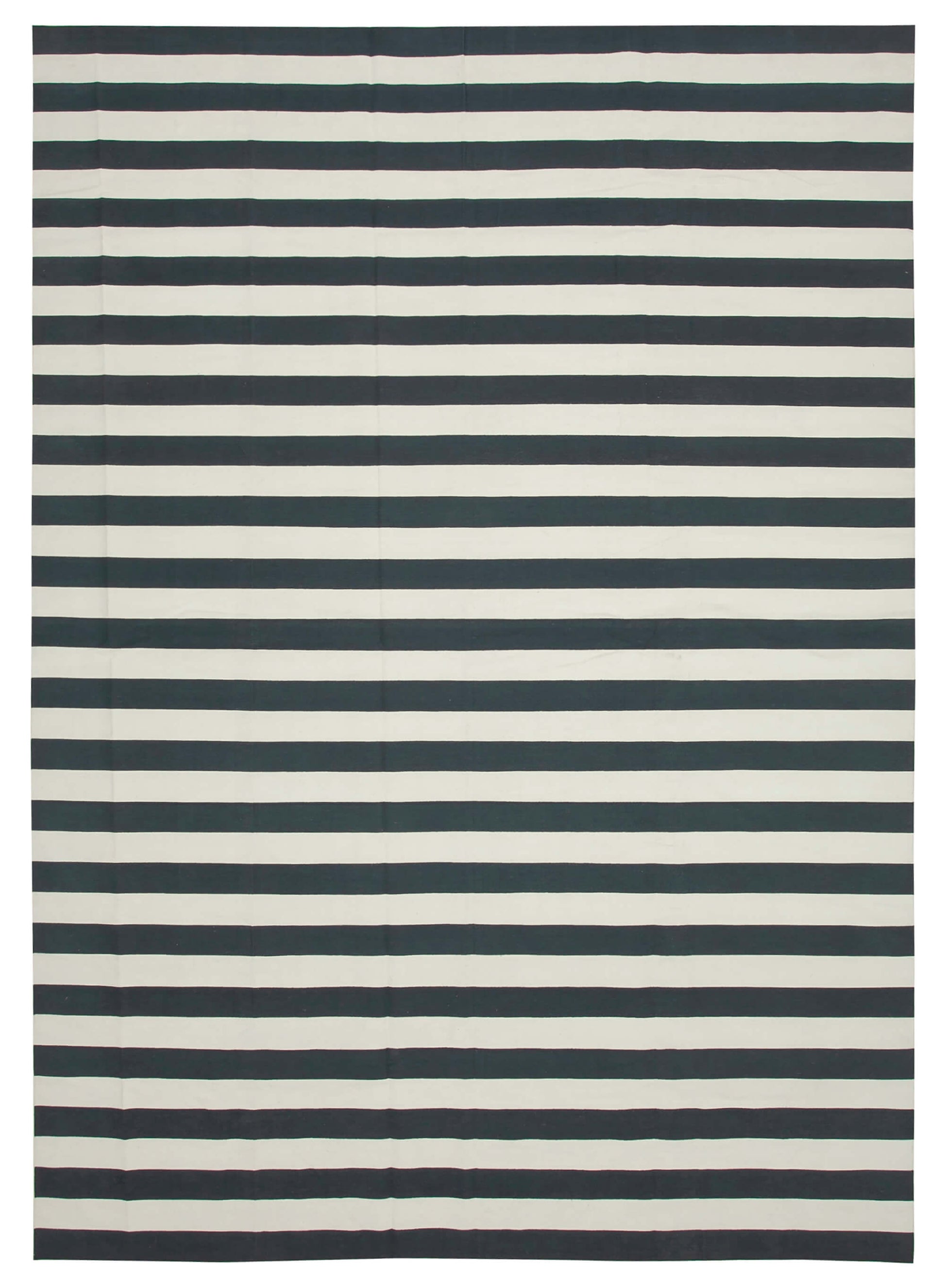 Transform your living space with our exquisite handwoven rug, a masterpiece that combines traditional craftsmanship with modern aesthetics. This rug, with its striking black and white striped pattern, is a testament to timeless elegance and sophistication. Measuring an impressive 14'2'' (432 cm) in length and 10'0'' (305 cm) in width, it is perfectly suited to enhance any room, from spacious living areas to cozy bedrooms. Crafted with a blend of cotton and wool, this rug offers both durability and comfort, making it an ideal choice for those who appreciate quality and style.