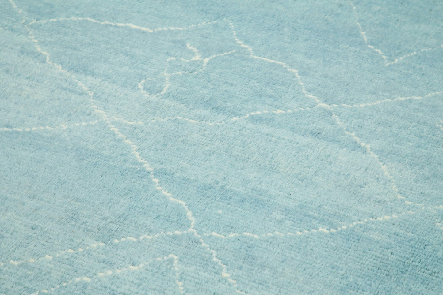 Incorporate this handwoven rug into your home decor to create a warm and inviting atmosphere. Place it in your living room to anchor your seating area, or use it in the dining room to add a touch of elegance. Its calming blue tones can enhance a bedroom, providing a serene backdrop for relaxation. Pair it with neutral furniture to let the rug's design shine, or use it as a foundation for bolder accent pieces. Consider adding complementary throw pillows or a cozy blanket to tie the room together.