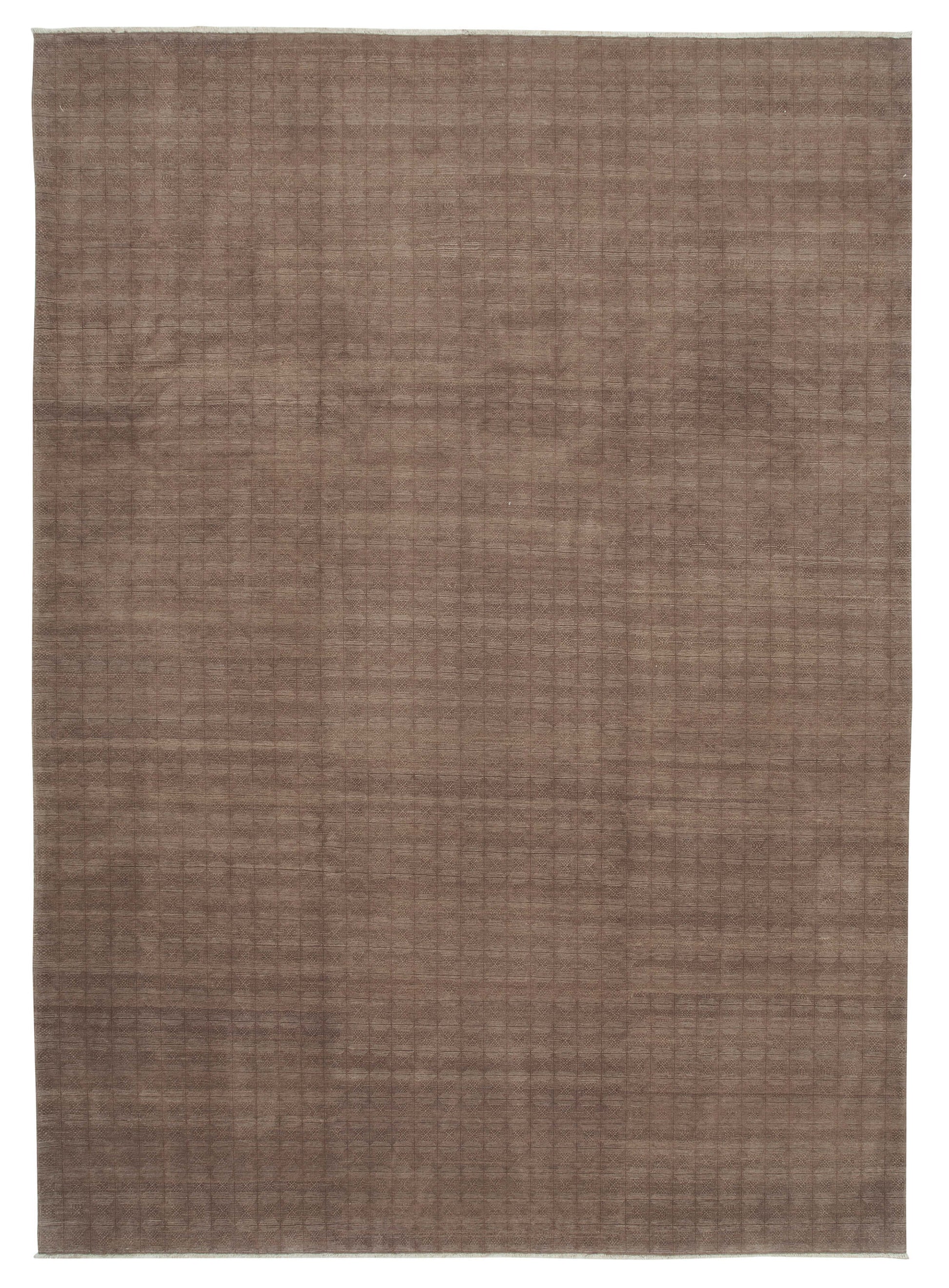 The design of this rug is a harmonious blend of subtlety and style. Its understated pattern features a delicate grid that adds texture without overwhelming the space. The color palette, dominated by earthy tones with hints of purple, creates a calming and inviting atmosphere. The rug's thickness, approximately 0.31'' (8.00 mm), provides a plush feel underfoot while maintaining a sleek profile. Aged between 10-20 years, this rug carries a sense of history and authenticity, making it a unique addition to your decor.