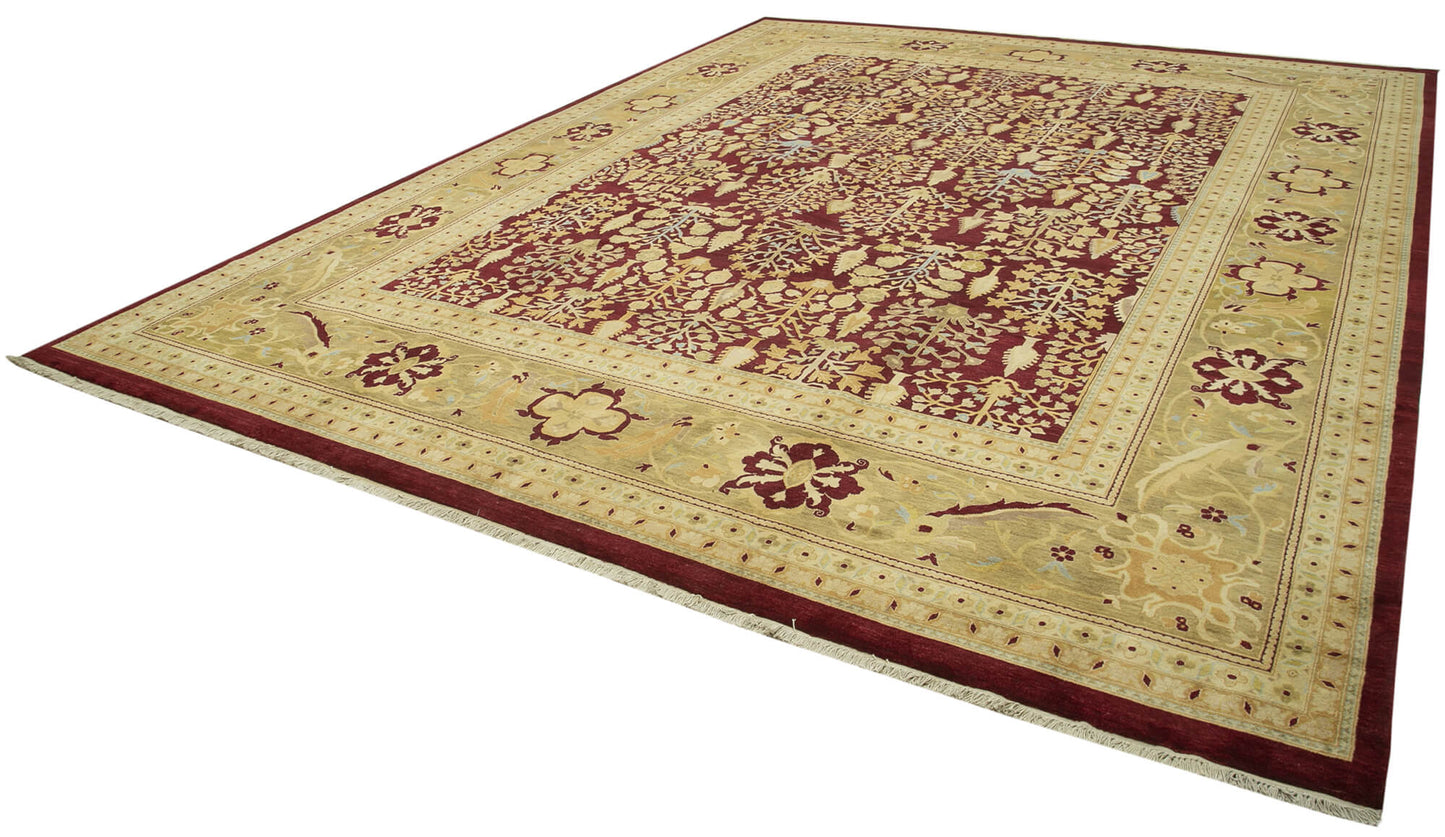 Transform your living space with our exquisite handwoven rug, a masterpiece that combines traditional craftsmanship with timeless elegance. Measuring an impressive 15'5'' (470 cm) in length and 11'11'' (362 cm) in width, this rug is designed to make a statement in any room. Crafted with a blend of cotton and wool, it offers a luxurious feel underfoot while ensuring durability. With an age of 10-20 years, this rug carries a rich history, adding character and charm to your home. The thickness of approximately 0.31'' (8.00 mm) provides a plush surface, perfect for both comfort and style.