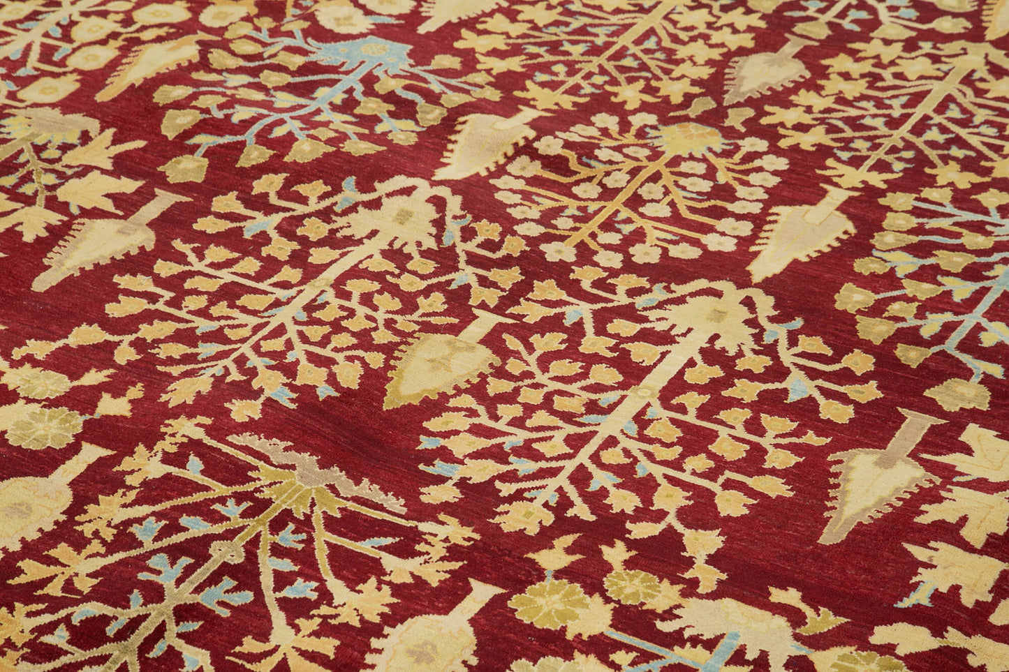 The intricate design of this rug is a testament to the skill and artistry of its creators. Featuring a harmonious blend of beige and red hues, the rug's pattern is both captivating and sophisticated. The central motif is adorned with elegant floral and geometric designs, creating a visual feast that draws the eye. The border is equally detailed, with complementary patterns that frame the central design beautifully. This rug's color palette and intricate patterns make it a versatile piece that can enhance both modern and traditional interiors.
