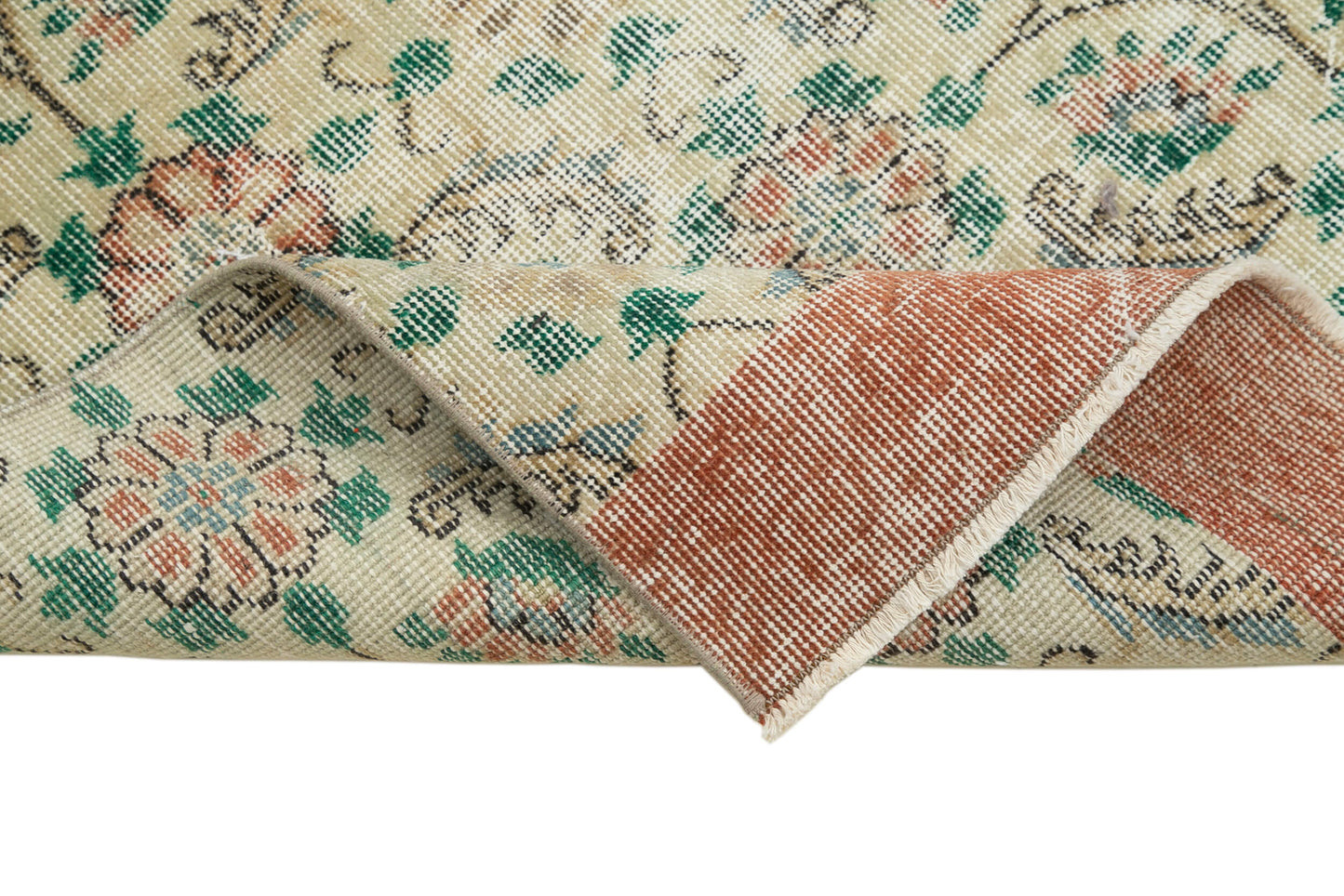 The design of this rug is a harmonious blend of colors and patterns that evoke a sense of tranquility and elegance. The soft beige background is beautifully complemented by intricate green motifs, creating a serene and inviting atmosphere. The use of cotton and wool in the weft and warp ensures a soft yet sturdy texture, making it a practical choice for high-traffic areas. The subtle variations in color and pattern reflect the rug's rich history, adding depth and character to its overall appearance. This piece is not just a rug; it's a work of art that tells a story.