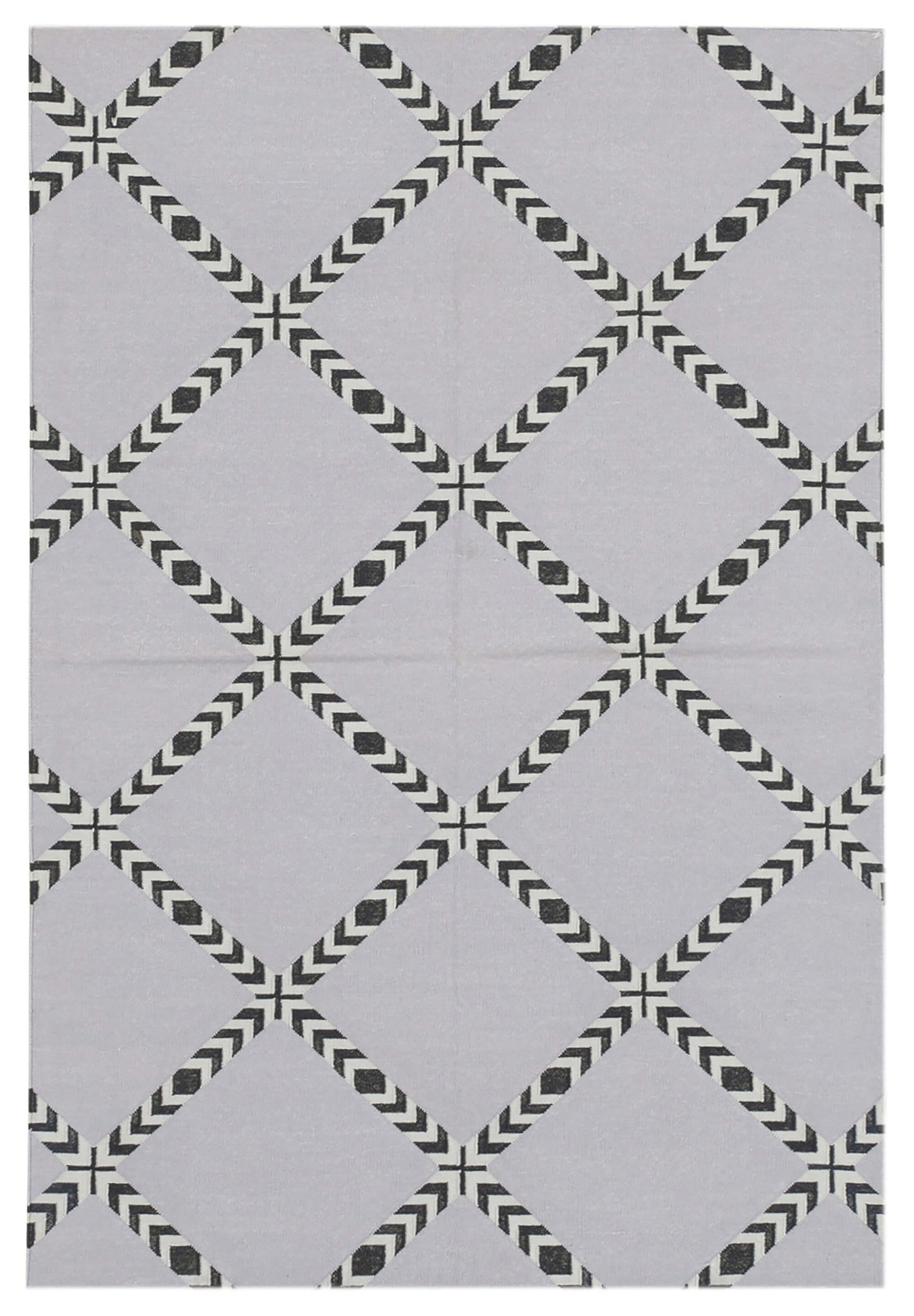 The design of this rug is a harmonious blend of simplicity and intricacy. Featuring a striking geometric pattern in black and white, it effortlessly complements a wide range of interior styles. The bold black lines form a captivating diamond motif, creating a sense of movement and depth. The use of cotton and wool in the weft and warp not only enhances its durability but also adds a luxurious texture. This rug's neutral color palette allows it to seamlessly integrate into any decor, whether you prefer a minimalist, contemporary, or traditional look. Its timeless design ensures it remains a focal point in your home for years to come.
