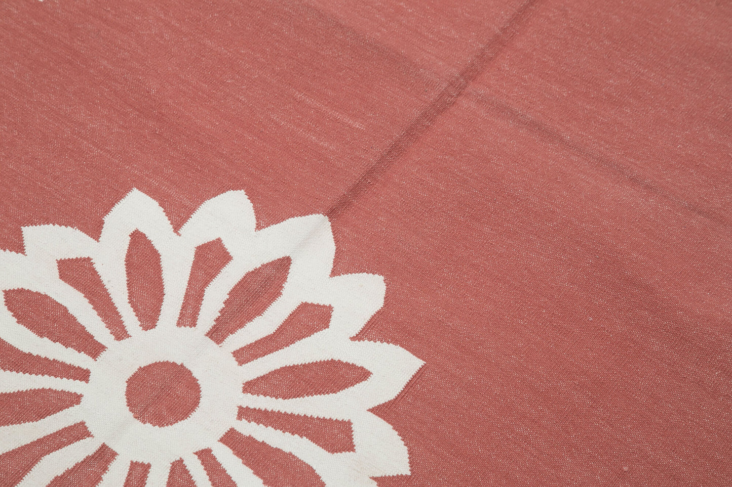 The design of this rug is a celebration of simplicity and sophistication. Its striking red background is adorned with bold white floral motifs, creating a captivating contrast that draws the eye. The weft and warp are meticulously crafted from cotton and wool, providing a soft yet resilient texture. With a thickness of approximately 0.24'' (6.00 mm), it offers a plush feel while maintaining a sleek profile. The color palette of red and white is versatile, allowing it to complement a wide range of interior styles, from modern minimalism to classic elegance.