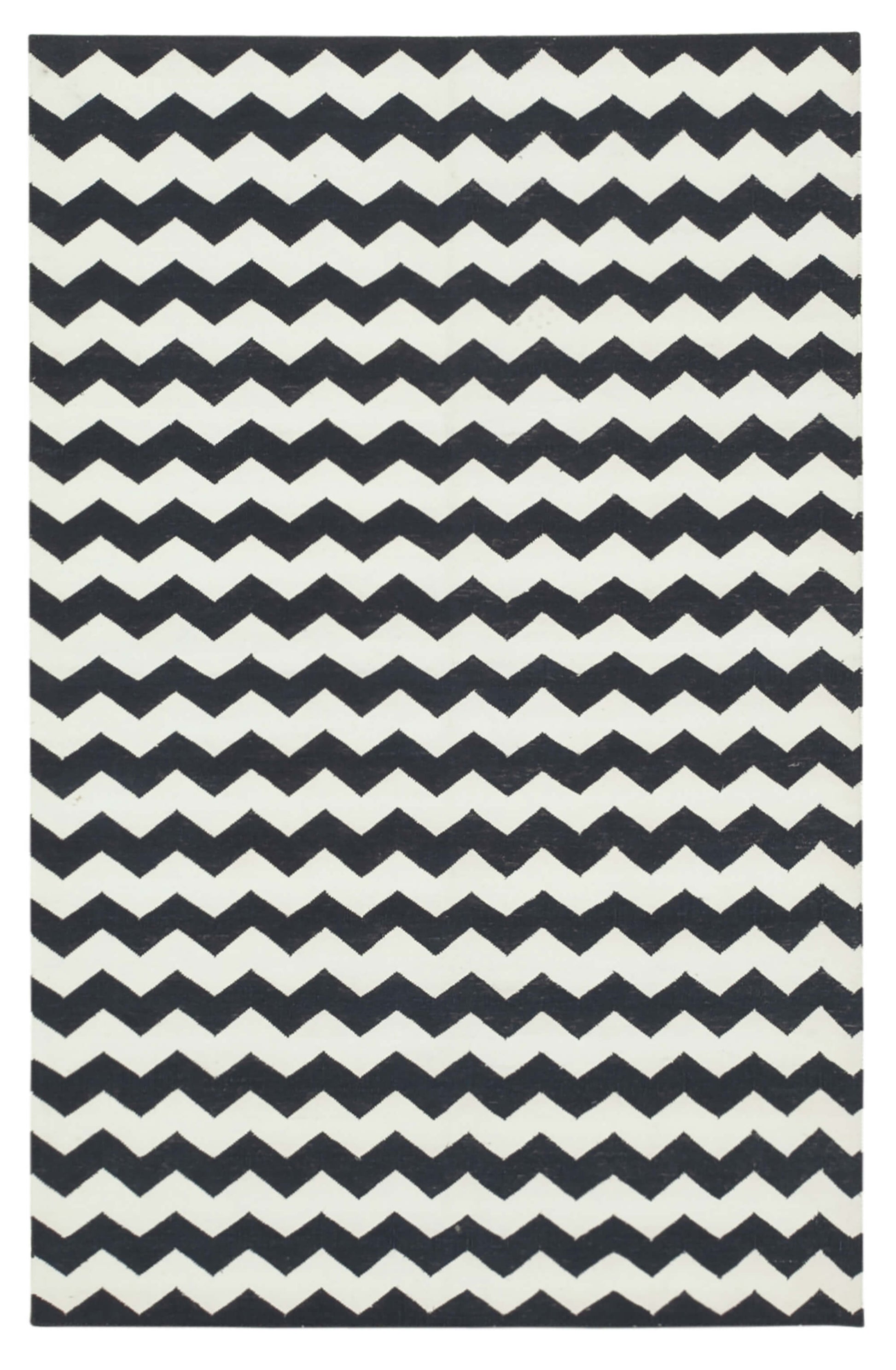 Transform your living space with our exquisite handwoven rug, a masterpiece that combines traditional craftsmanship with modern design. Measuring 5'4'' (162 cm) in length and 3'7'' (108 cm) in width, this rug is the perfect addition to any room, offering both style and comfort. Crafted from a blend of cotton and wool, the rug boasts a thickness of approximately 0.24'' (6.00 mm), providing a plush feel underfoot. With a striking black and white chevron pattern, this rug is sure to become a focal point in your home, adding a touch of elegance and sophistication.