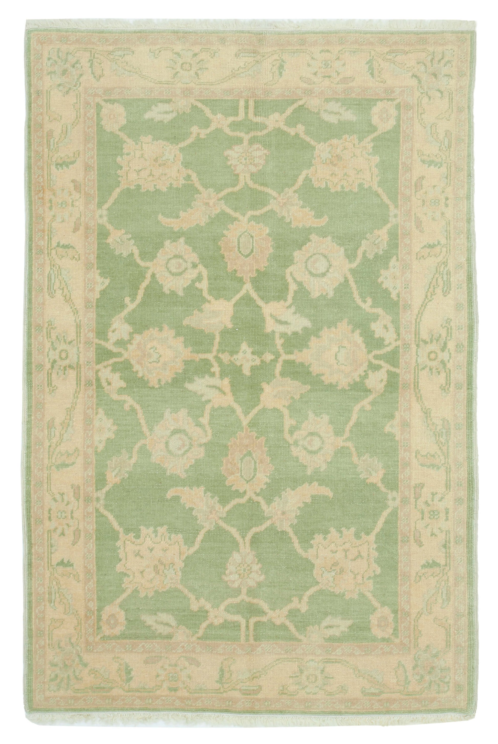 The design of this handwoven rug is a harmonious blend of classic and contemporary elements. Its intricate patterns are woven with precision, showcasing a stunning interplay of green and beige tones. The weft and warp are crafted from high-quality cotton and wool, providing a soft yet resilient texture. With a thickness of approximately 0.31'' (8.00 mm), it offers a plush feel underfoot while maintaining its structural integrity. The subtle floral motifs and geometric shapes create a visual rhythm that captivates the eye, making it a focal point in any room.
