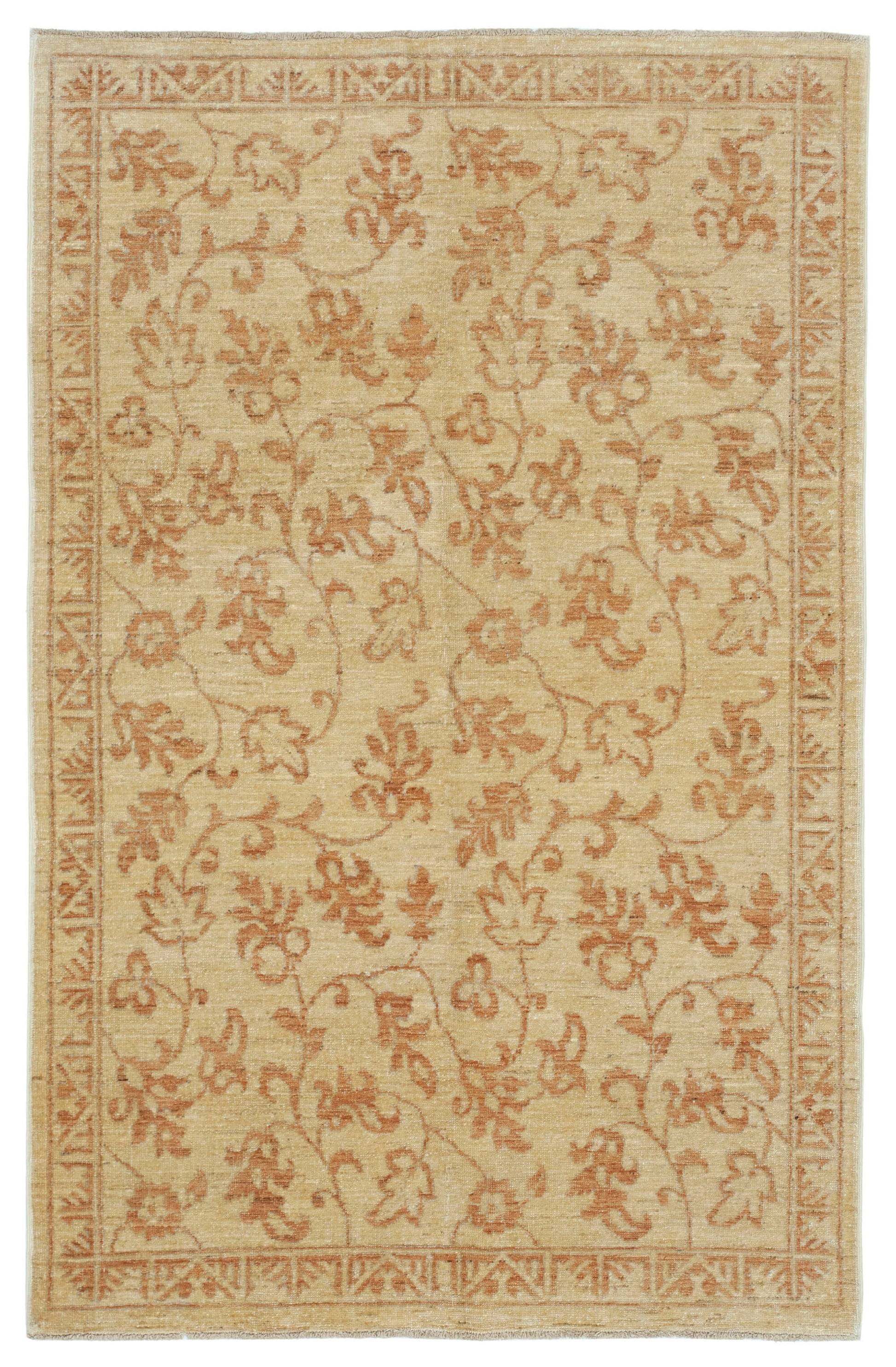 The design of this rug is a harmonious blend of colors and patterns that evoke a sense of tranquility and charm. Featuring a palette of warm yellows and oranges, it creates a welcoming atmosphere in any room. The intricate floral motifs are woven with precision, showcasing the skill of the artisans. The thickness of approximately 0.31'' (8.00 mm) provides a plush texture, making it a comfortable addition to your home. The cotton and wool weft and warp ensure a sturdy construction, promising longevity and resilience.