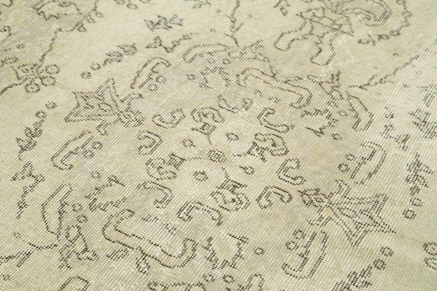 The design of this handwoven rug is a harmonious blend of classic and contemporary elements. Its subtle beige color palette is complemented by intricate patterns that add depth and texture. The weft and warp are crafted from high-quality cotton and wool, ensuring a soft yet resilient surface. The rug's vintage charm is evident in its delicate motifs, which are both elegant and understated. This piece is not just a rug; it's a work of art that tells a story of tradition and craftsmanship.