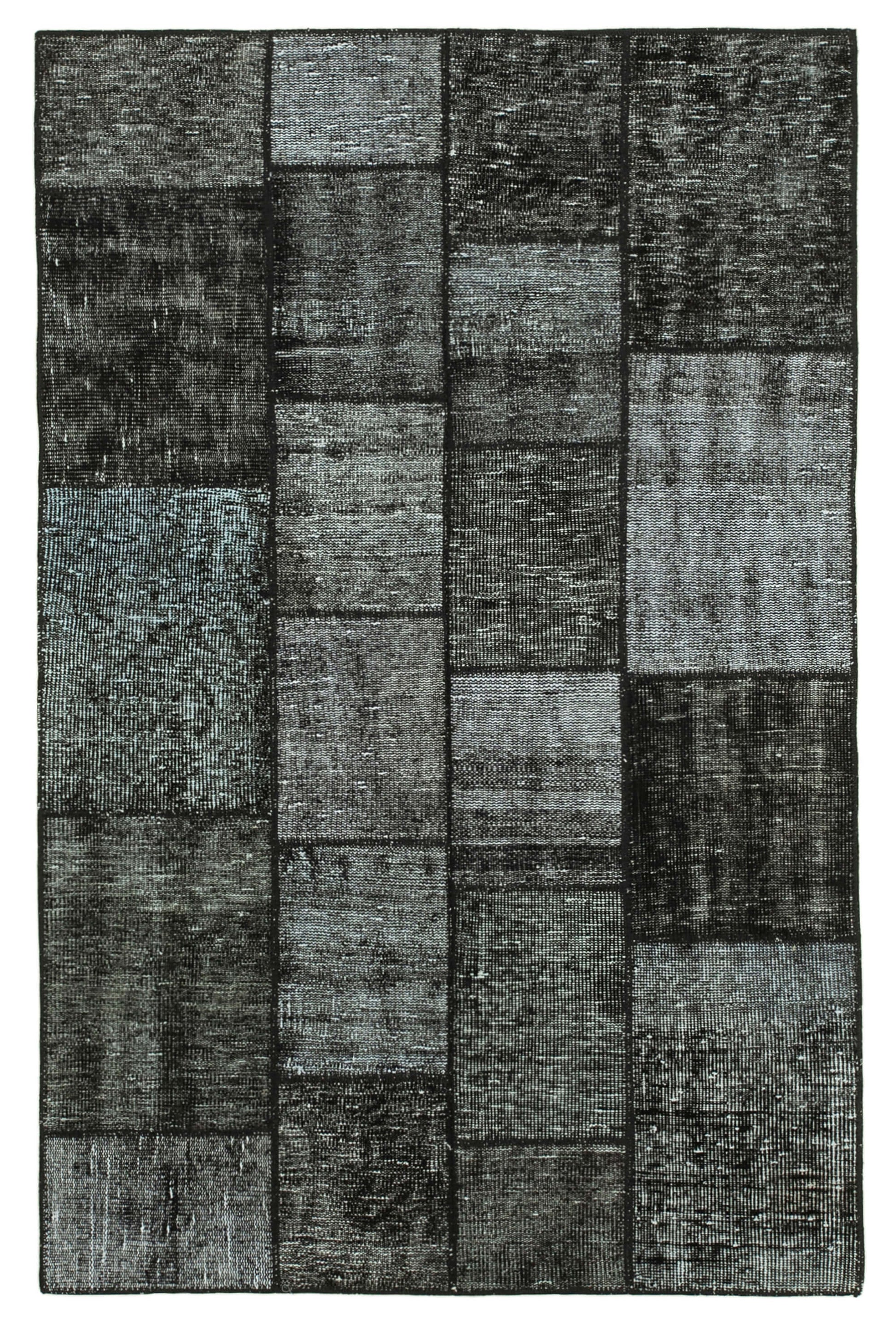 The design of this handwoven rug is a harmonious blend of classic and contemporary elements. Its patchwork pattern features a sophisticated palette of black and various shades of gray, creating a versatile look that complements a wide range of interior styles. The intricate weaving showcases the skillful interplay of cotton and wool, resulting in a durable and resilient piece. The subtle variations in color and texture add depth and character, making each section of the rug a work of art in its own right. This rug is not just a floor covering; it's a statement piece that elevates the aesthetic of any space.