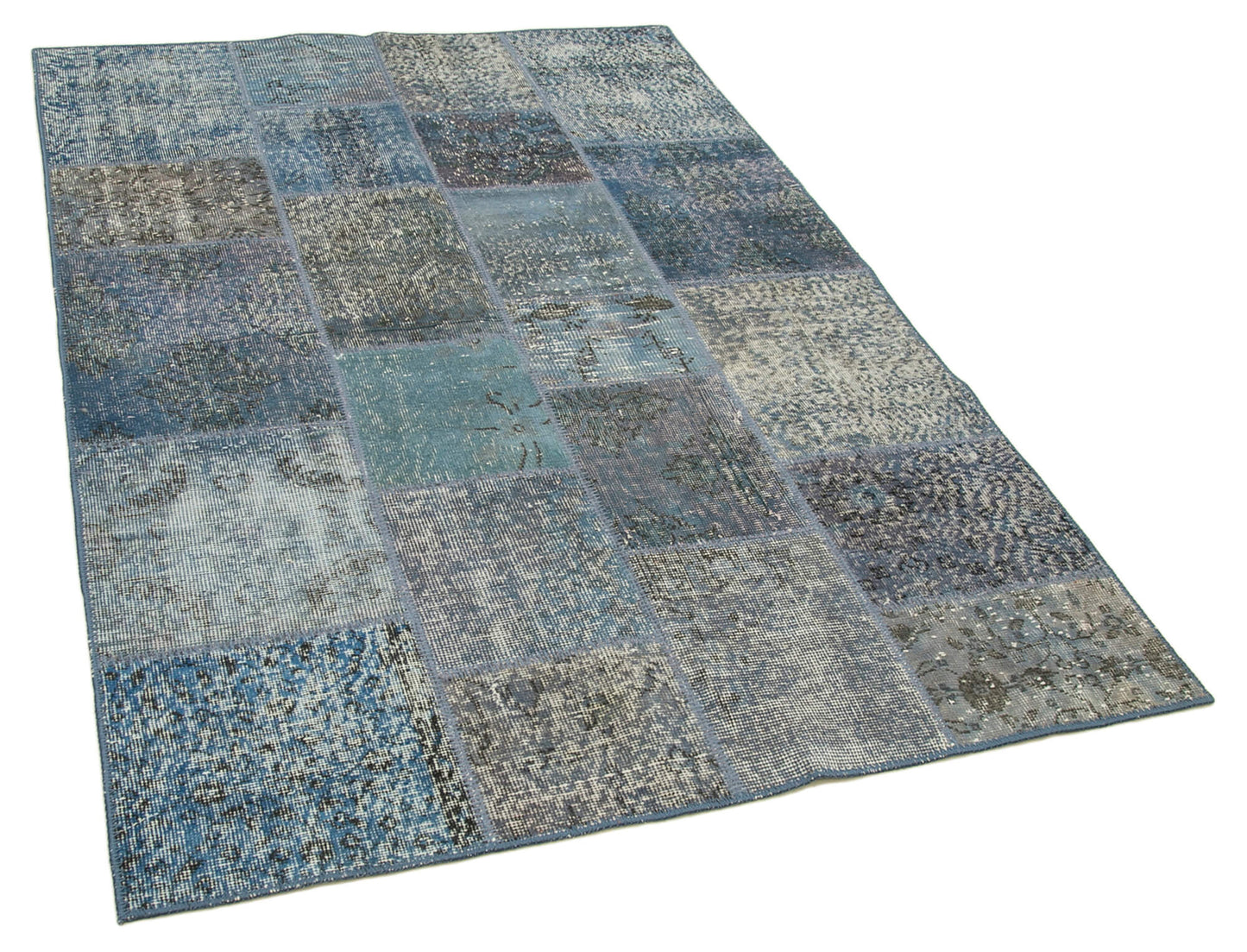 This handwoven rug features a harmonious blend of cotton and wool in its weft and warp, ensuring durability and comfort underfoot. The thickness of approximately 0.31'' (8.00 mm) provides a plush feel while maintaining a sleek profile. The rug's color palette, dominated by soothing shades of blue, creates a calming ambiance. The intricate patchwork design showcases a variety of patterns, each telling its own story, yet seamlessly coming together to form a cohesive whole. This unique design is a testament to the skill and artistry of the weavers, making it a standout piece in any collection.