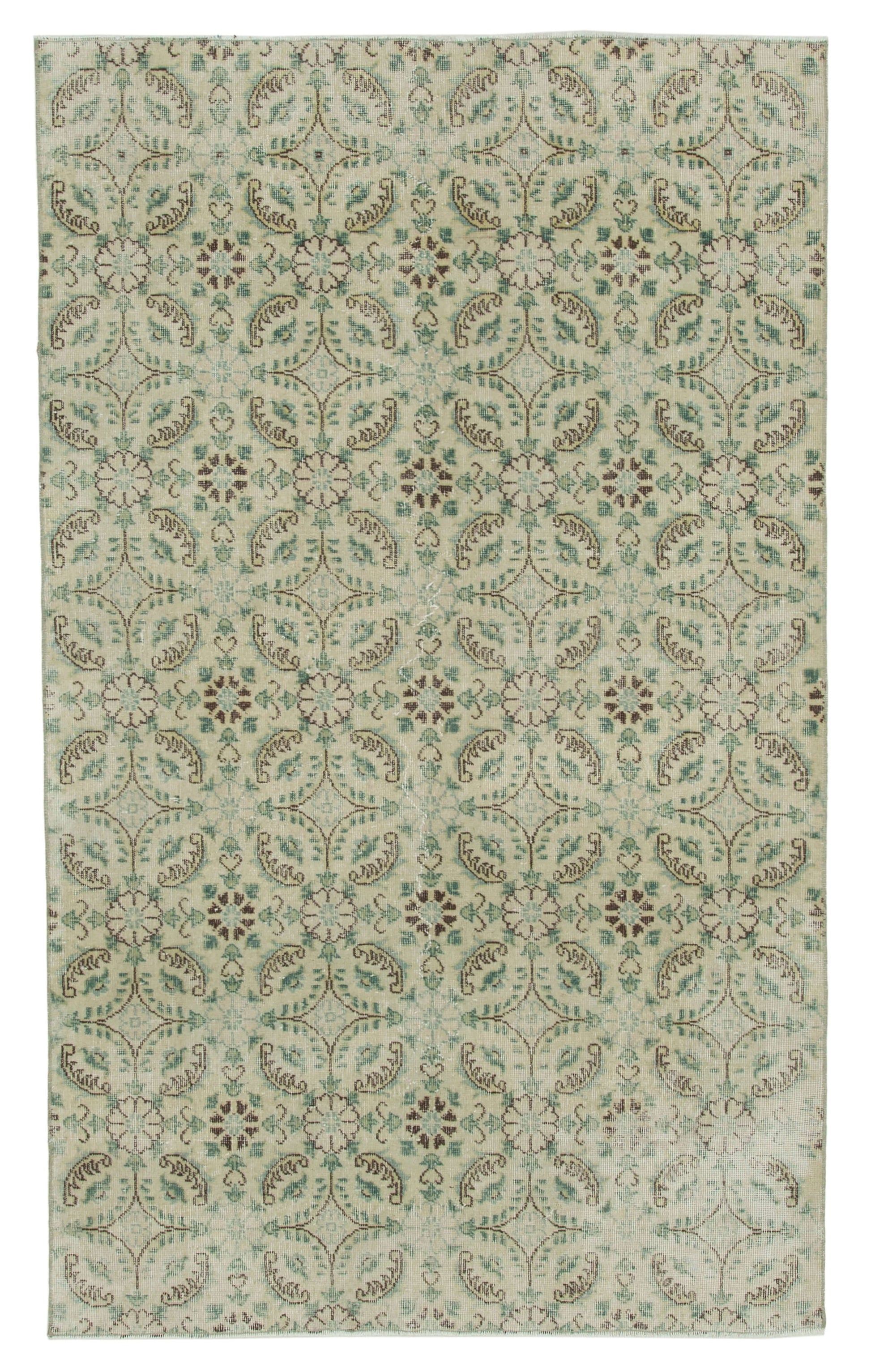 The design of this handwoven rug is a harmonious blend of colors and patterns. Featuring a soothing palette of beige and green, it effortlessly complements a variety of interior styles. The intricate motifs are woven with precision, showcasing a delicate balance of traditional and contemporary aesthetics. The rug's thickness of approximately 0.20'' (5.00 mm) provides a plush feel while maintaining a sleek profile. The cotton and wool weft and warp create a sturdy yet soft texture, making it a luxurious addition to any room.