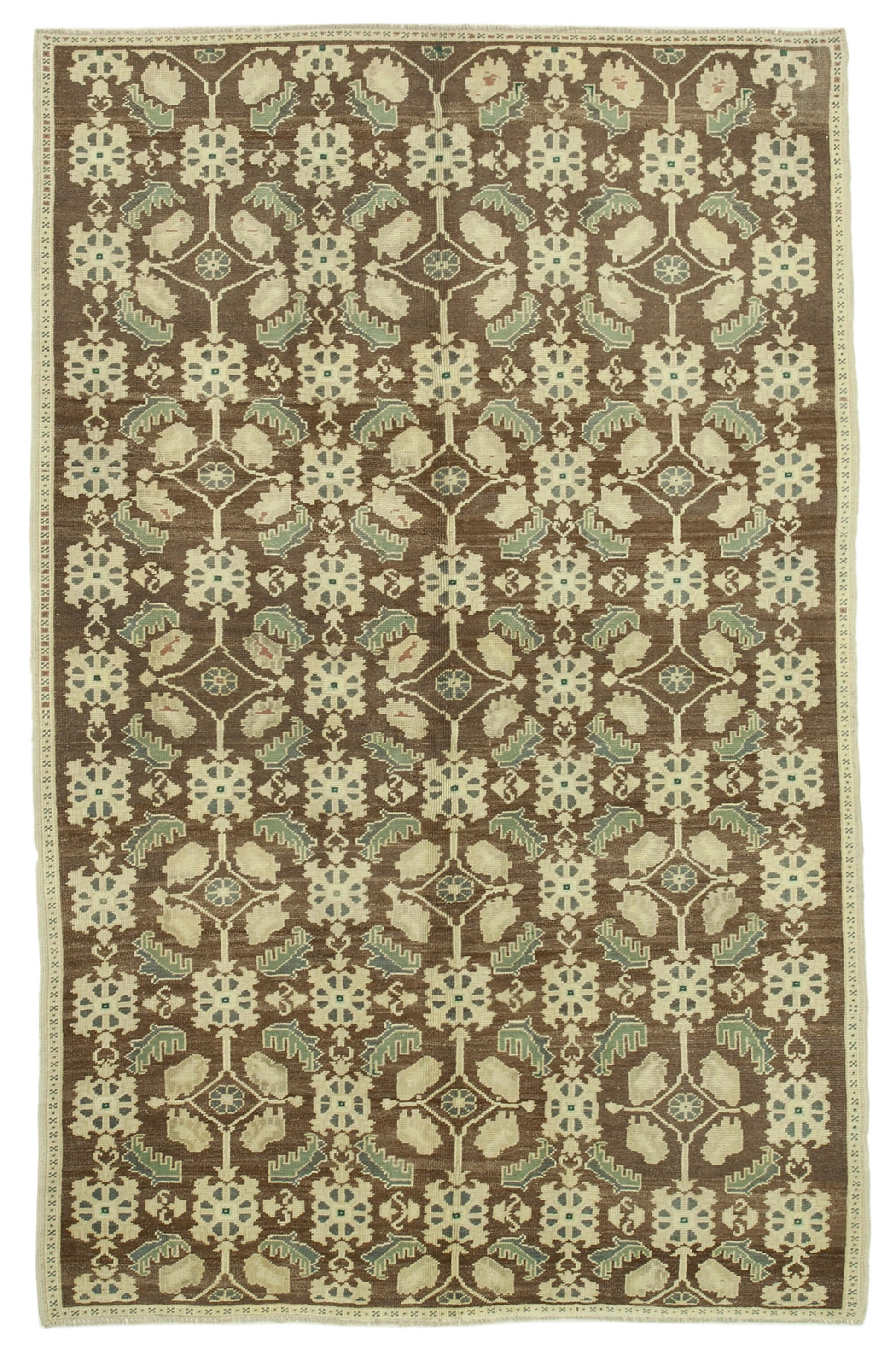 This handwoven rug features a stunning pattern that combines traditional motifs with a modern aesthetic. The weft and warp are made entirely of wool, ensuring durability and a luxurious feel underfoot. With an age of 60-80 years, this rug carries a sense of history and authenticity. Its thickness of approximately 0.39'' (10 mm) adds a plush texture, making it a comfortable addition to any room. The color palette of beige and brown creates a harmonious blend that complements a variety of interior styles, from classic to contemporary.