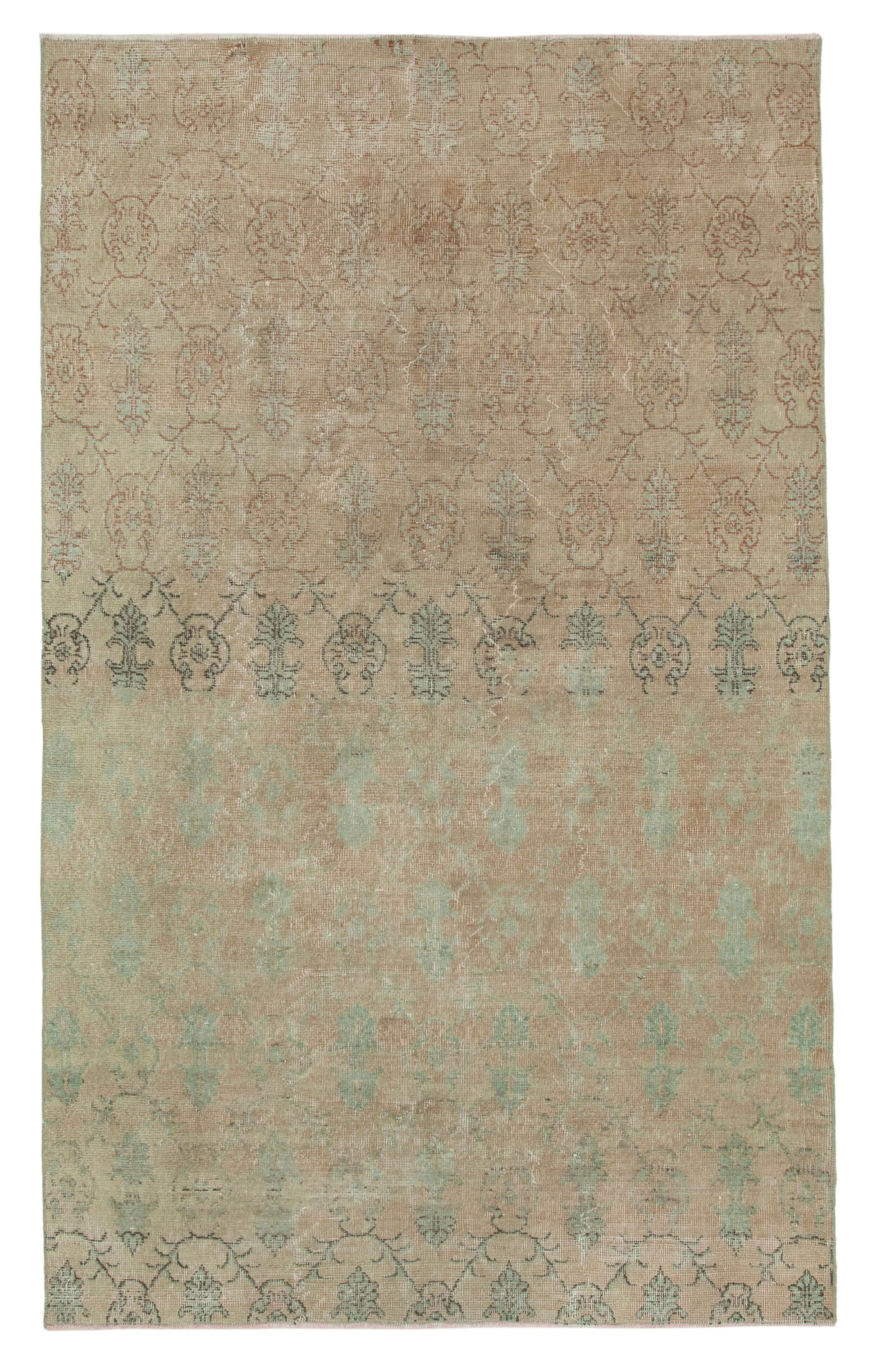 The design of this rug is a harmonious blend of traditional and contemporary aesthetics. Its subtle color palette, featuring shades of orange and other muted tones, creates a serene and inviting atmosphere. The intricate patterns woven into the fabric showcase the artistry and skill of the craftsmen, with a thickness of approximately 0.20'' (5.00 mm) providing a plush feel. The rug's aged appearance adds character, making it a unique addition to any decor style, from classic to modern.