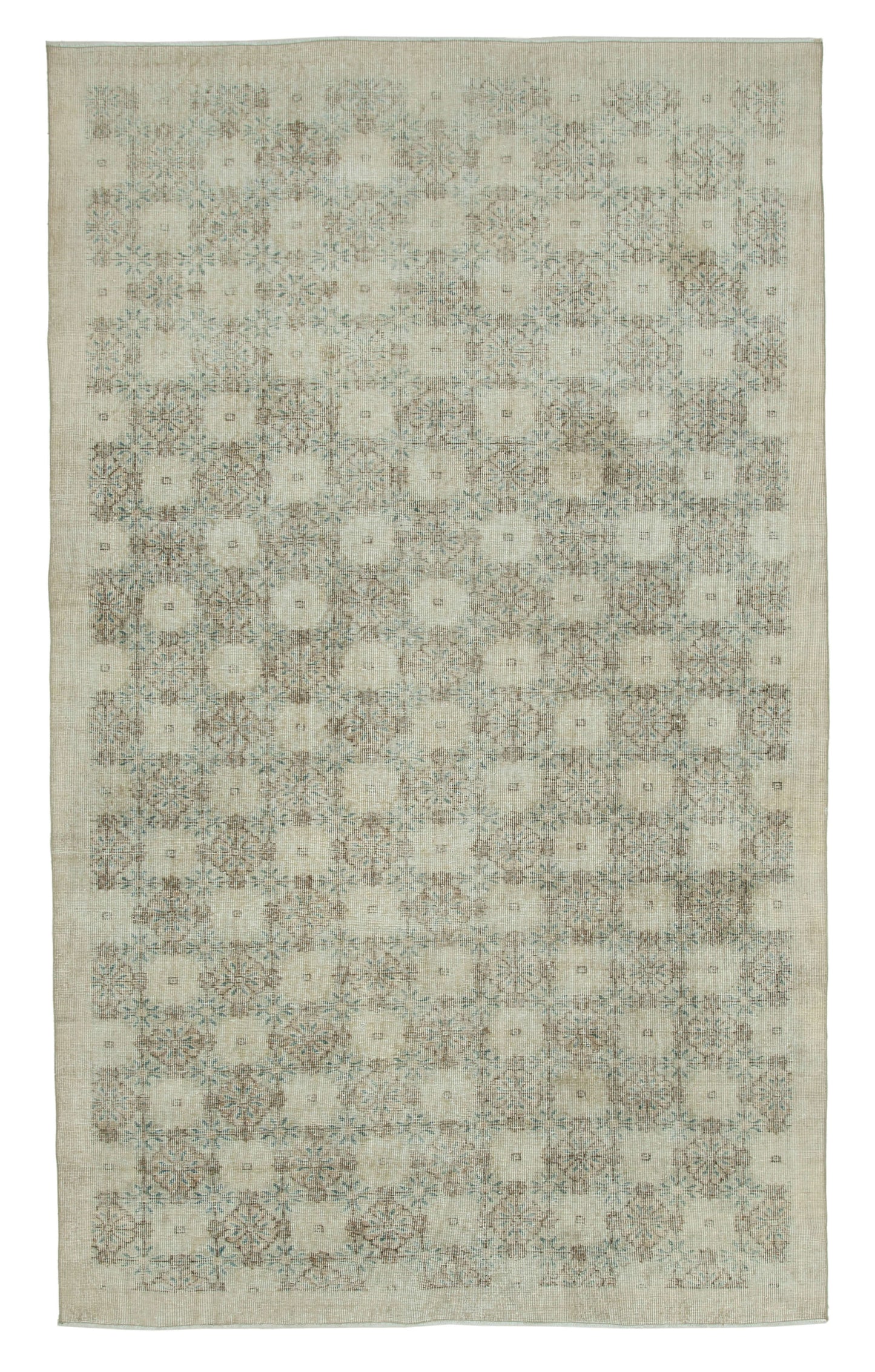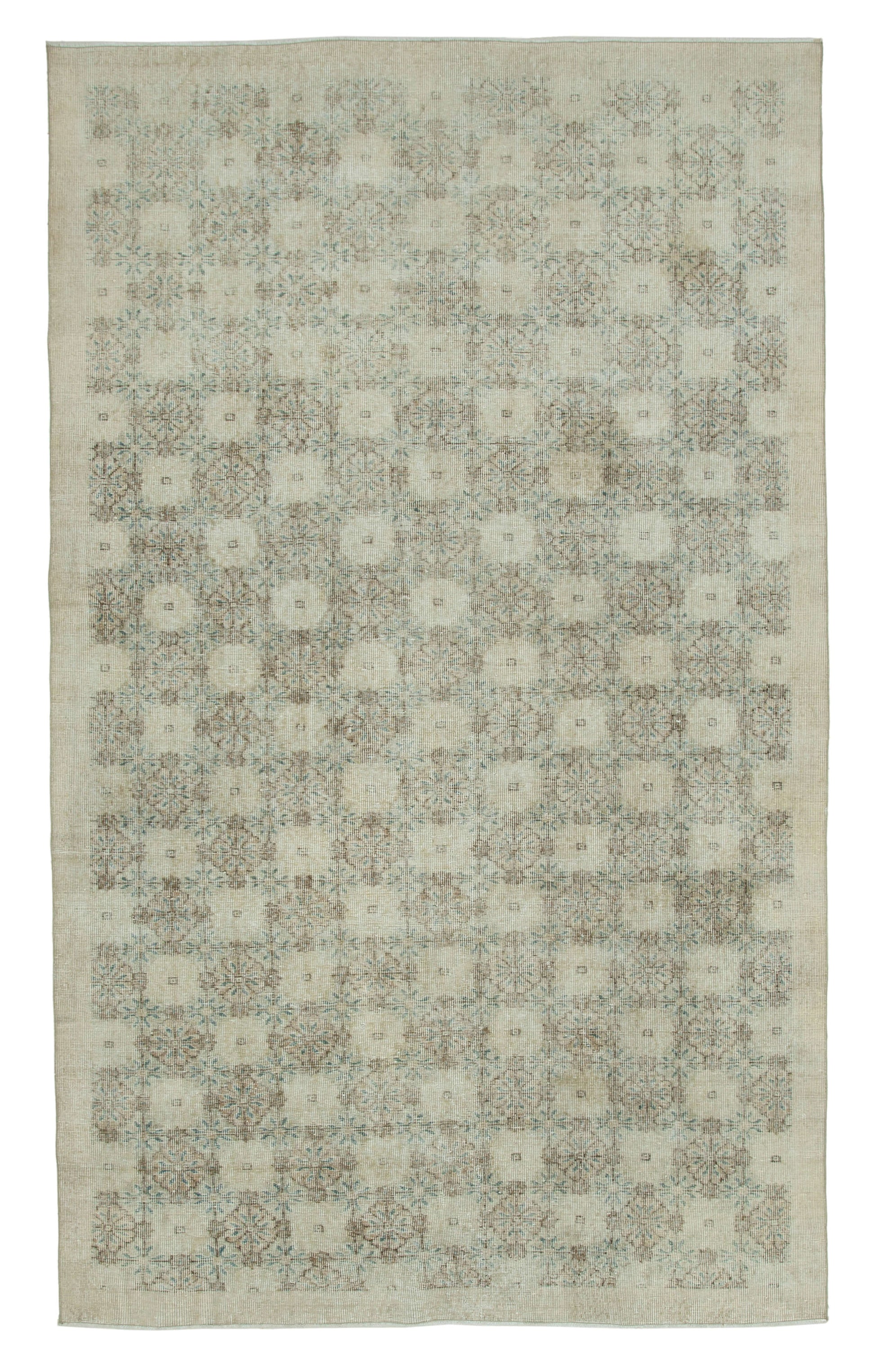 This handwoven rug features a harmonious blend of cotton and wool in its weft and warp, providing a soft yet resilient texture. The rug's age, ranging from 30 to 70 years, adds a layer of history and character, making it a unique addition to your home. The subtle beige tones, complemented by intricate patterns, create a serene and inviting atmosphere. The delicate motifs are a nod to traditional designs, offering a sense of cultural richness and depth. This rug's understated elegance makes it versatile, seamlessly fitting into both contemporary and classic interiors.