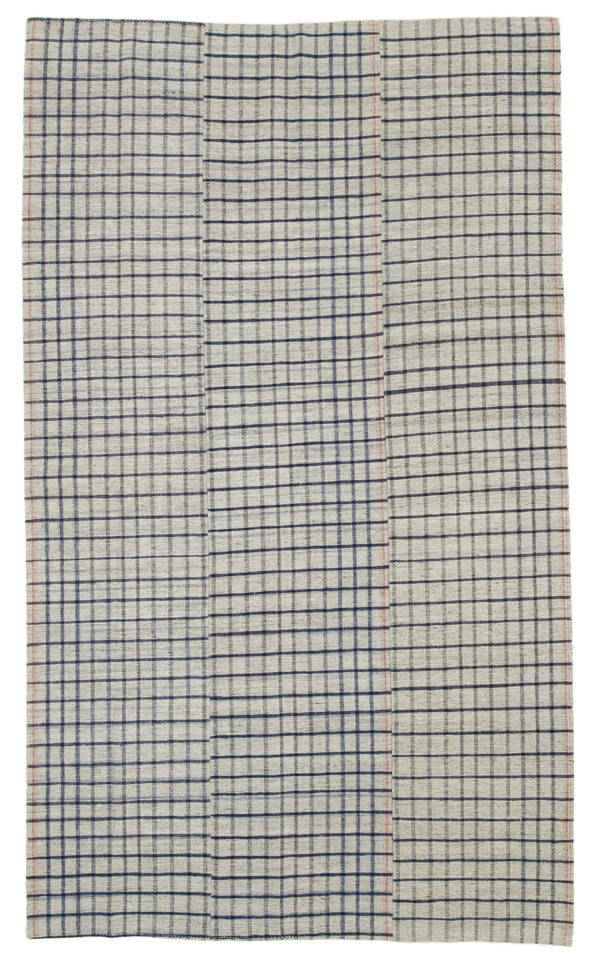 The design of this handwoven rug is a harmonious blend of classic and contemporary elements. Featuring a captivating grid pattern in soothing shades of beige and blue, it effortlessly complements a variety of interior styles. The use of cotton and wool in the weft and warp not only enhances its durability but also adds a luxurious texture underfoot. The subtle interplay of colors creates a serene ambiance, making it an ideal choice for those seeking a calming yet stylish addition to their home. This rug's intricate design is a reflection of the skilled craftsmanship that has been passed down through generations.