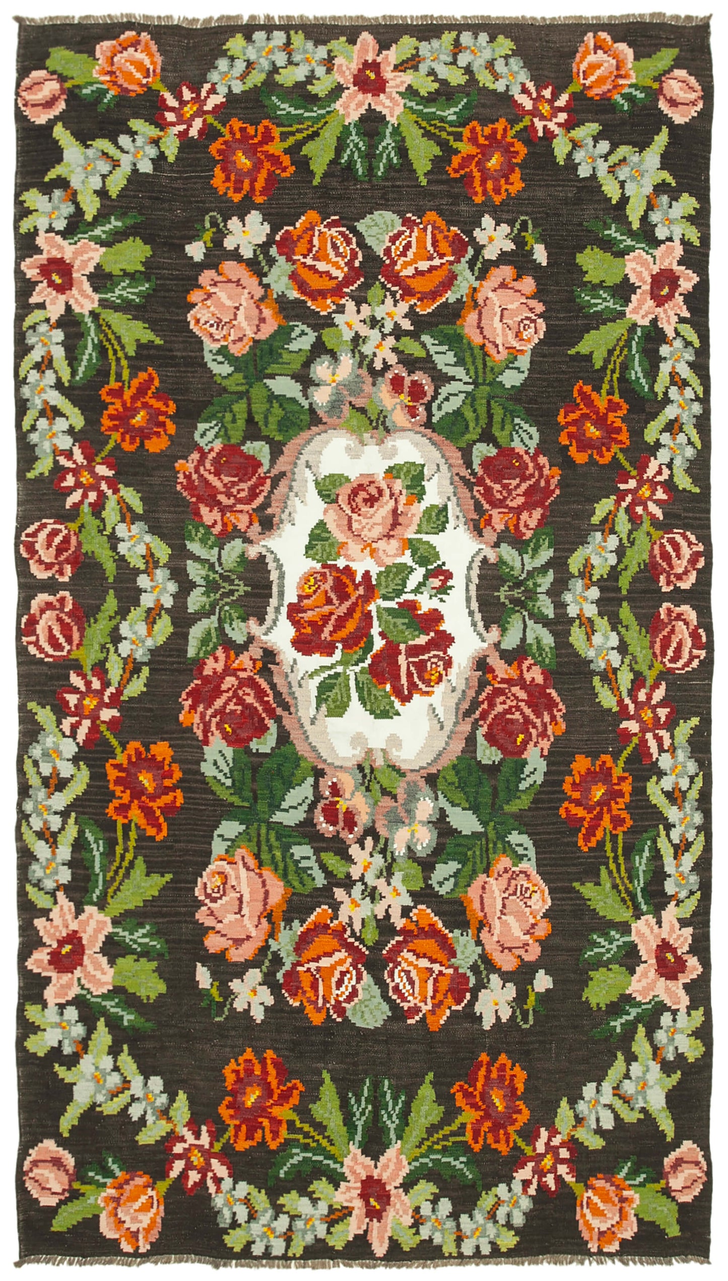 6x11 Black Vintage Moldovan Kilim Rug - 23461