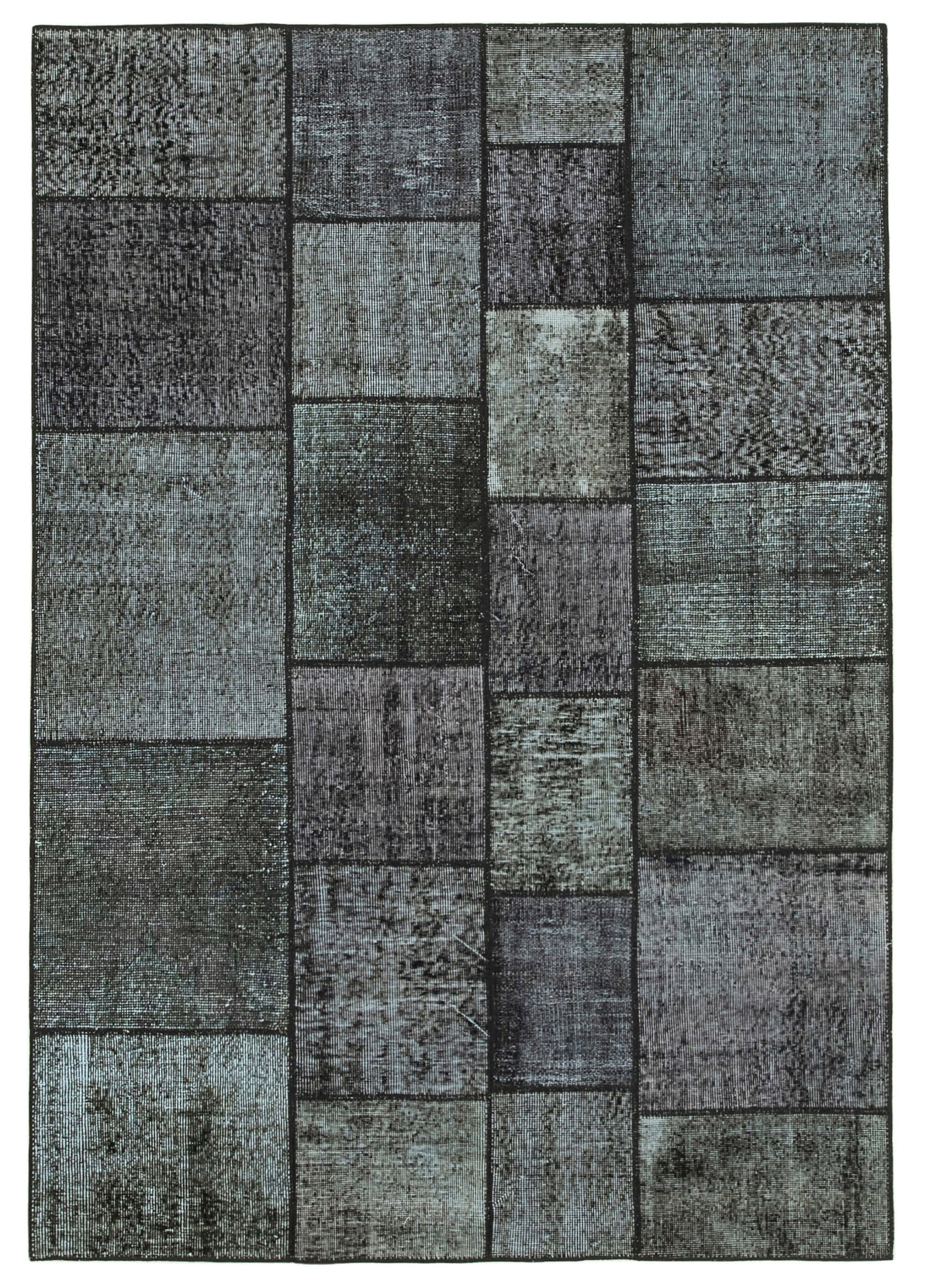 The design of this handwoven rug is a testament to its 30-50 years of heritage, showcasing a patchwork of intricate patterns and textures. Each section of the rug tells its own story, woven together to create a harmonious whole. The cotton and wool weft and warp provide a soft yet resilient surface, making it ideal for high-traffic areas. The muted color scheme of black and gray adds depth and dimension, allowing the rug to serve as a stunning focal point or a subtle backdrop in any room.