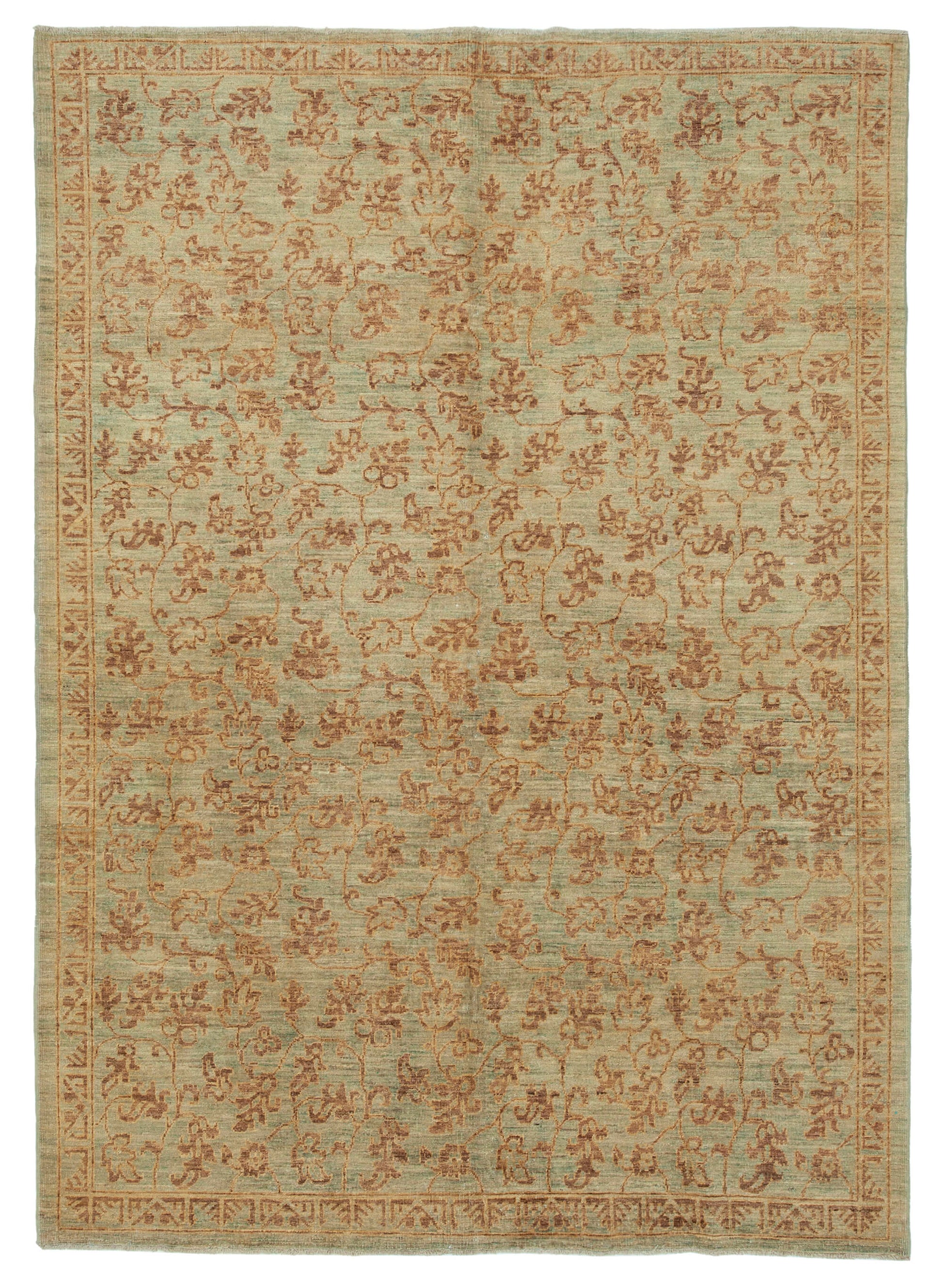 This handwoven rug features a captivating design that combines the natural beauty of brown and green hues. The weft and warp are crafted from a blend of cotton and wool, ensuring durability and a soft texture underfoot. With an age of 10-20 years, this rug carries a sense of history and character, making it a unique addition to your decor. The thickness of approximately 0.31'' (8.00 mm) provides a plush feel, while the intricate floral patterns add a touch of elegance. The subtle interplay of colors creates a serene ambiance, making it a versatile piece that complements various interior styles.