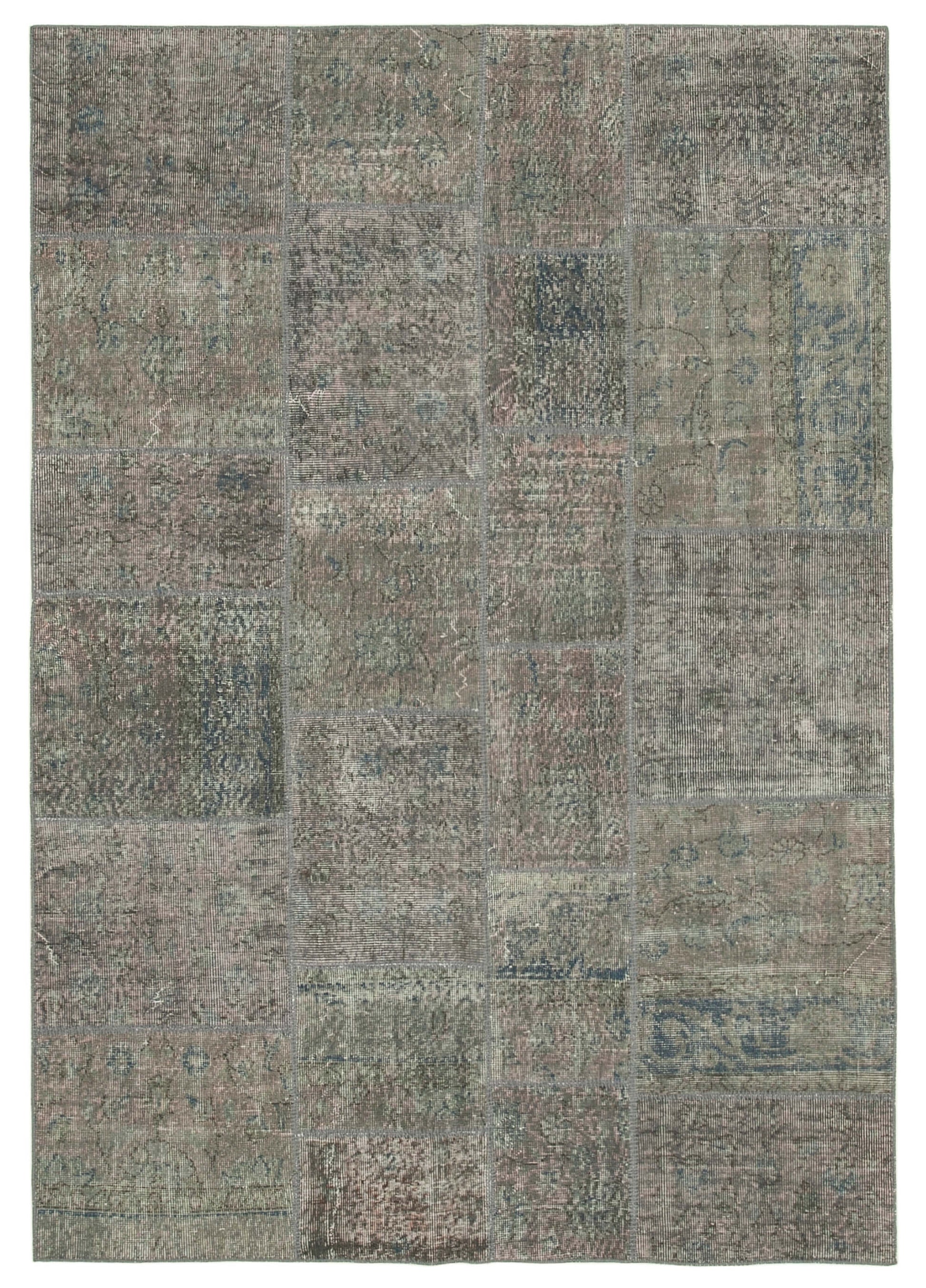 The design of this handwoven rug is a harmonious blend of cotton and wool, creating a durable and luxurious texture. The intricate patterns and subtle color palette, featuring shades of grey, add depth and character to the piece. Each section of the rug tells a story, with delicate motifs and designs that reflect the cultural heritage of its origin. The combination of weft and warp techniques results in a sturdy yet soft finish, making it a versatile addition to any decor style. Its aged appearance adds a vintage charm, making it a standout piece in both modern and traditional settings.