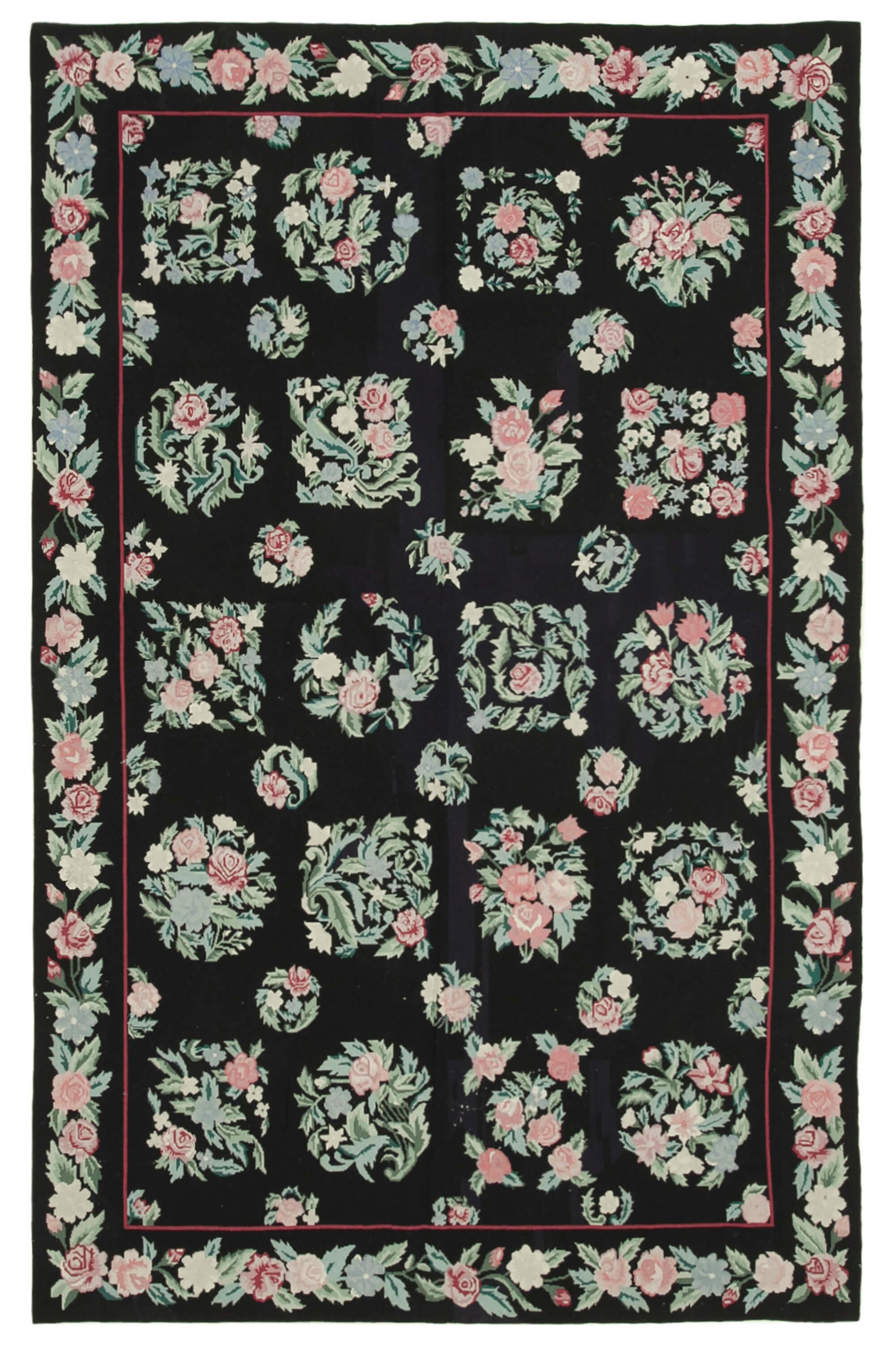 The design of this rug is a harmonious blend of classic and contemporary elements. Its black background serves as a striking canvas for the intricate floral patterns that adorn its surface. The delicate motifs, featuring shades of pink, green, and blue, are meticulously woven to create a captivating visual effect. The weft and warp of cotton and wool provide a robust structure, while the approximate thickness of 0.16'' (4.00 mm) ensures a plush feel. This rug is not just a floor covering; it's a piece of art that transforms any room into a gallery of elegance.
