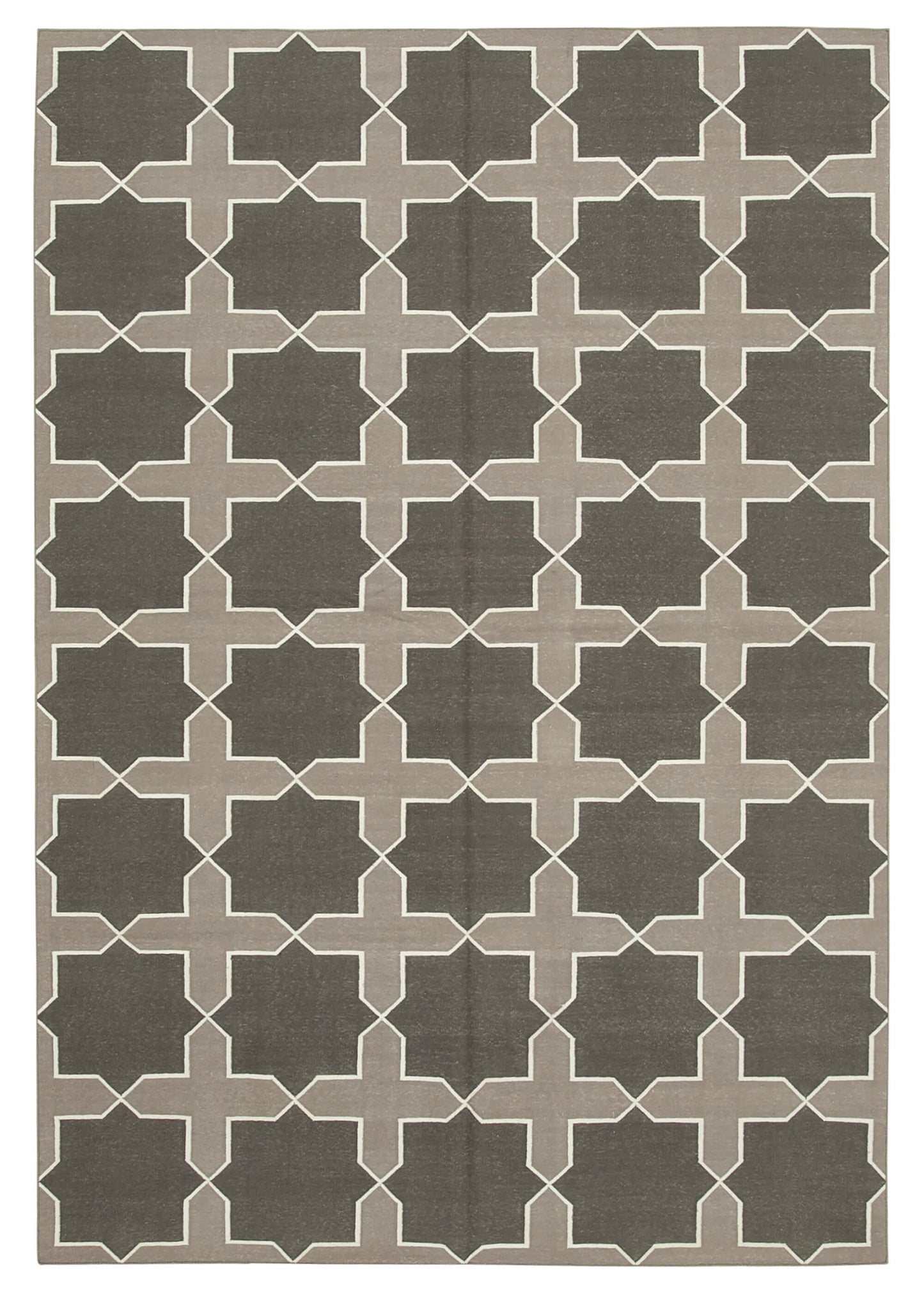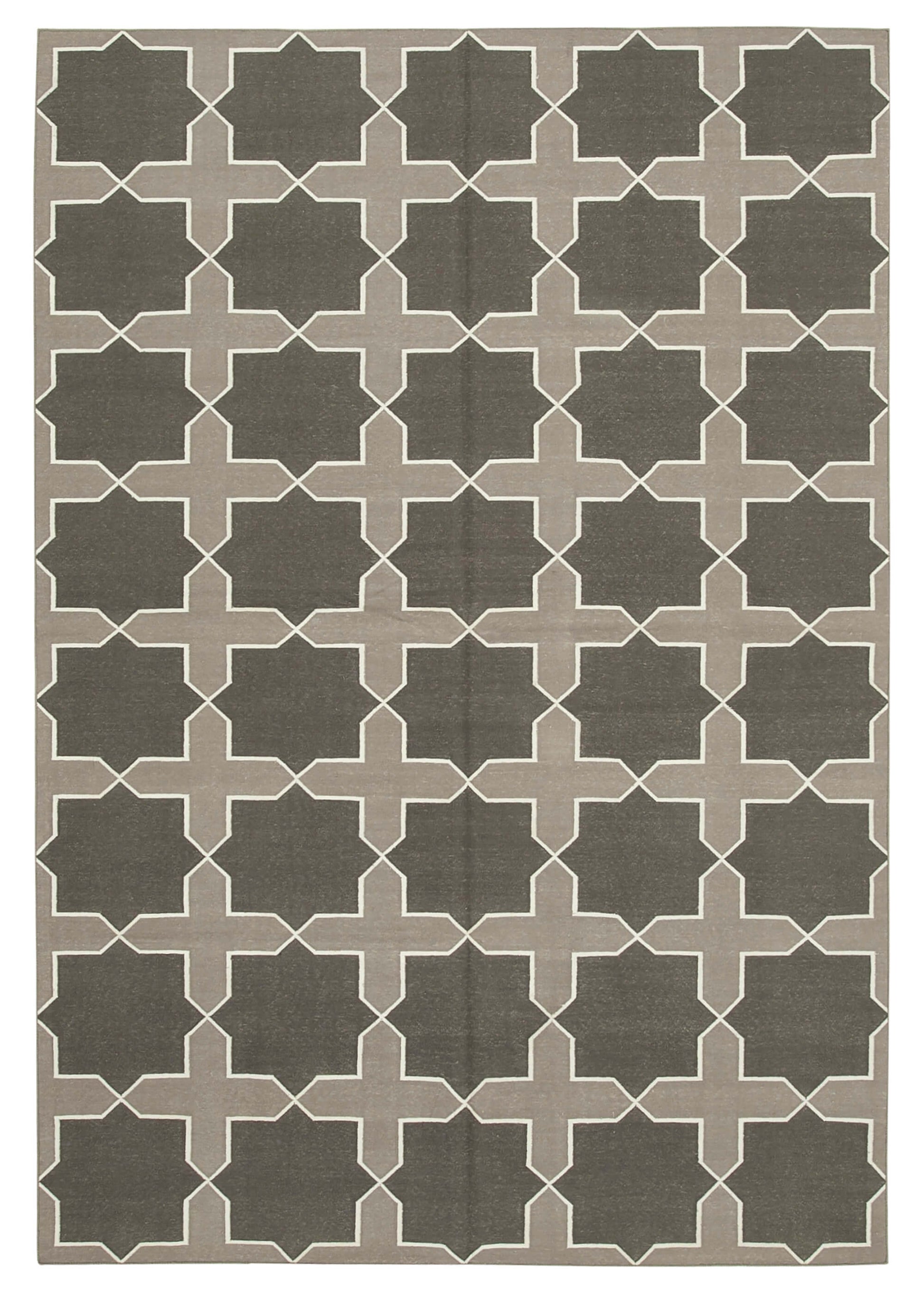 The rug features a captivating geometric pattern in shades of brown, creating a sophisticated and versatile look. The intricate design is a testament to the skill of the artisans who crafted it, ensuring each piece is unique. The cotton and wool blend offers durability and softness, making it ideal for high-traffic areas. The neutral color palette allows it to seamlessly blend with various decor styles, from contemporary to traditional. Its substantial size makes it a focal point in any room, while the intricate pattern adds depth and interest.