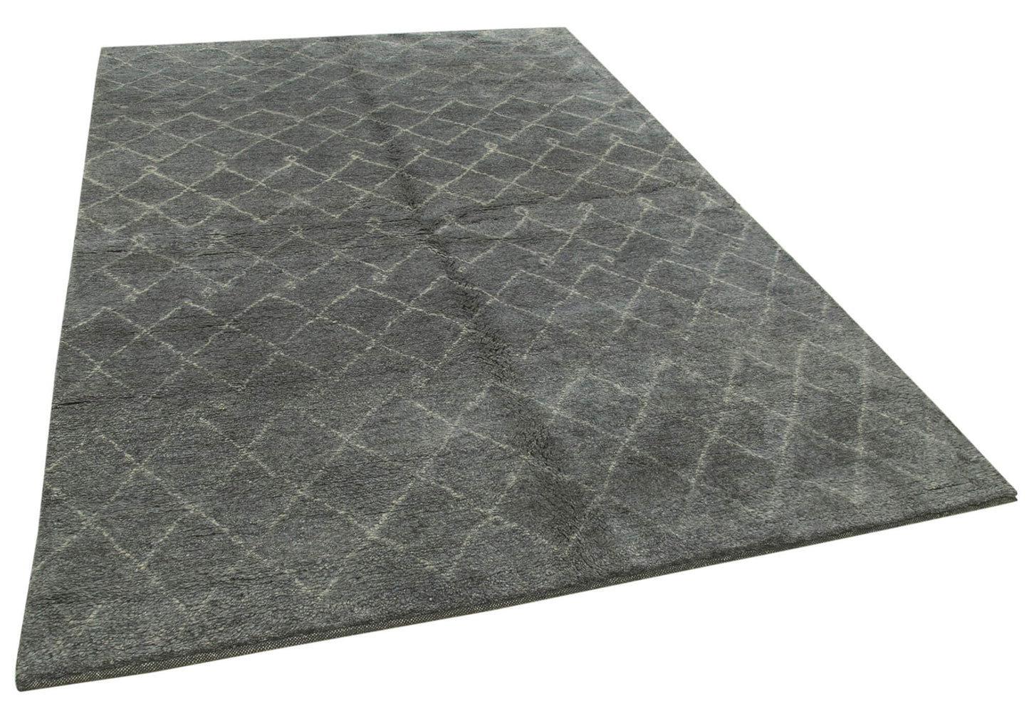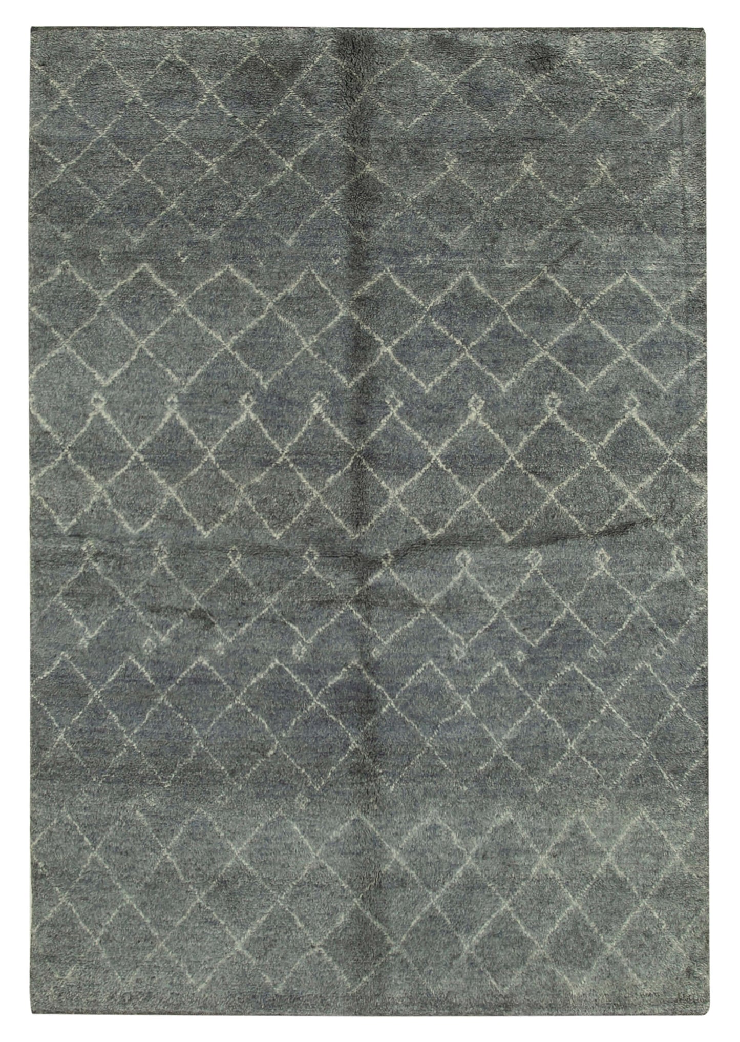 The rug features a sophisticated design with a subtle grey color palette, enhanced by an intricate diamond pattern that adds depth and texture. The weft and warp are meticulously crafted from high-quality wool and cotton, ensuring durability and longevity. This combination of materials not only enhances the rug's aesthetic appeal but also provides a soft and inviting surface. The neutral grey tones make it versatile, allowing it to seamlessly blend with various interior styles, from contemporary to classic.