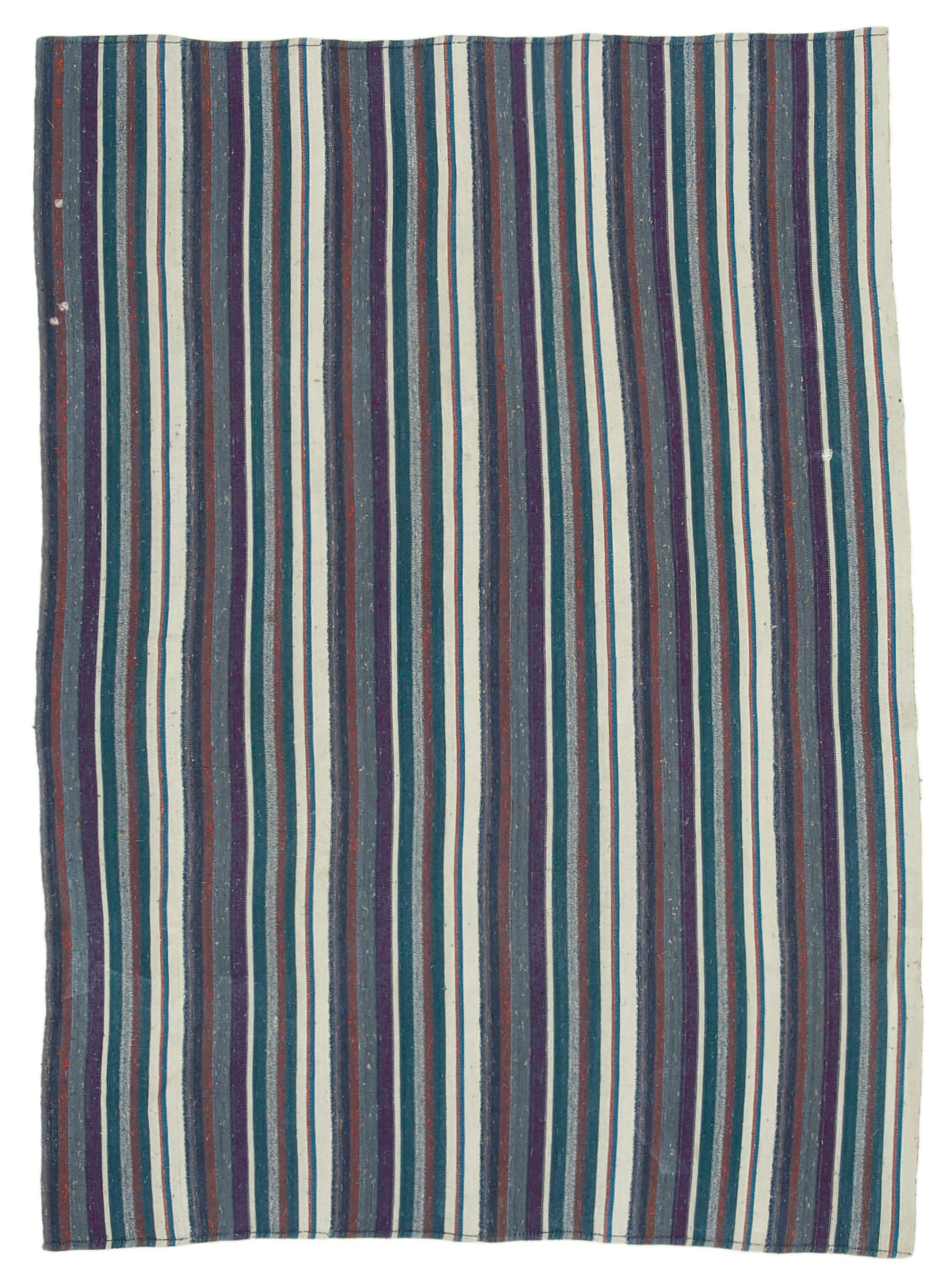 The design of this handwoven rug is a harmonious blend of colors and textures. Featuring a striking combination of purple and other complementary hues, it creates a visually captivating pattern that draws the eye. The weft and warp are crafted from a blend of cotton and wool, ensuring durability and a soft, luxurious feel underfoot. With a thickness of approximately 0.20'' (5.00 mm), this rug offers a comfortable and plush surface. Its vintage appeal is enhanced by the subtle variations in color and texture, a hallmark of its handcrafted nature.