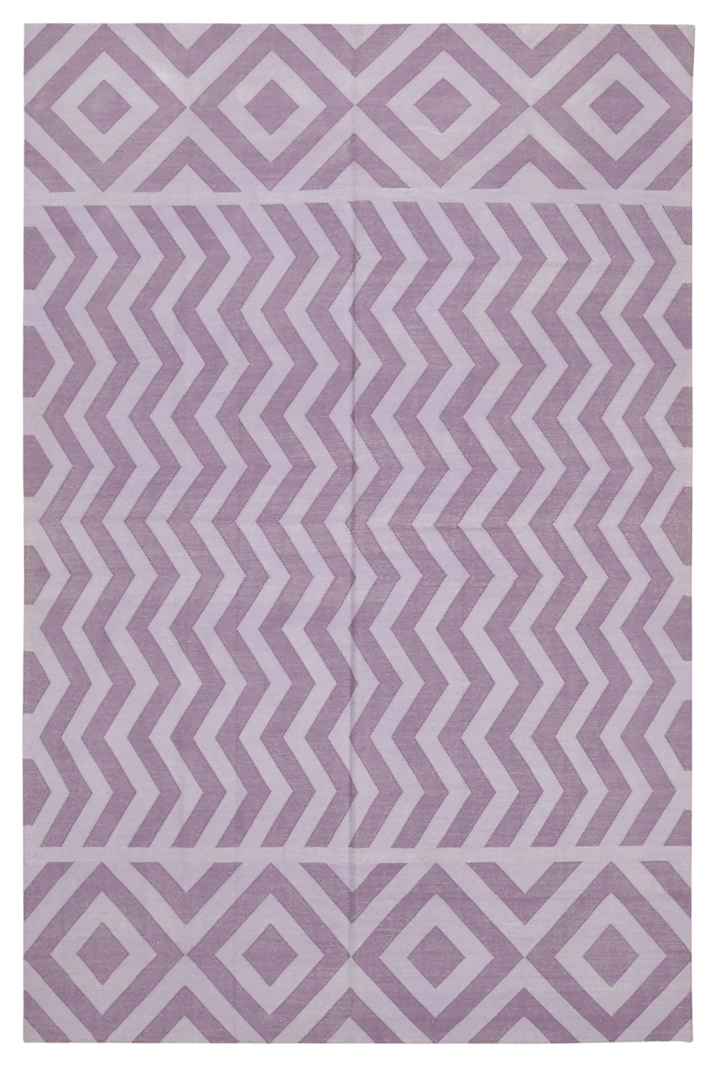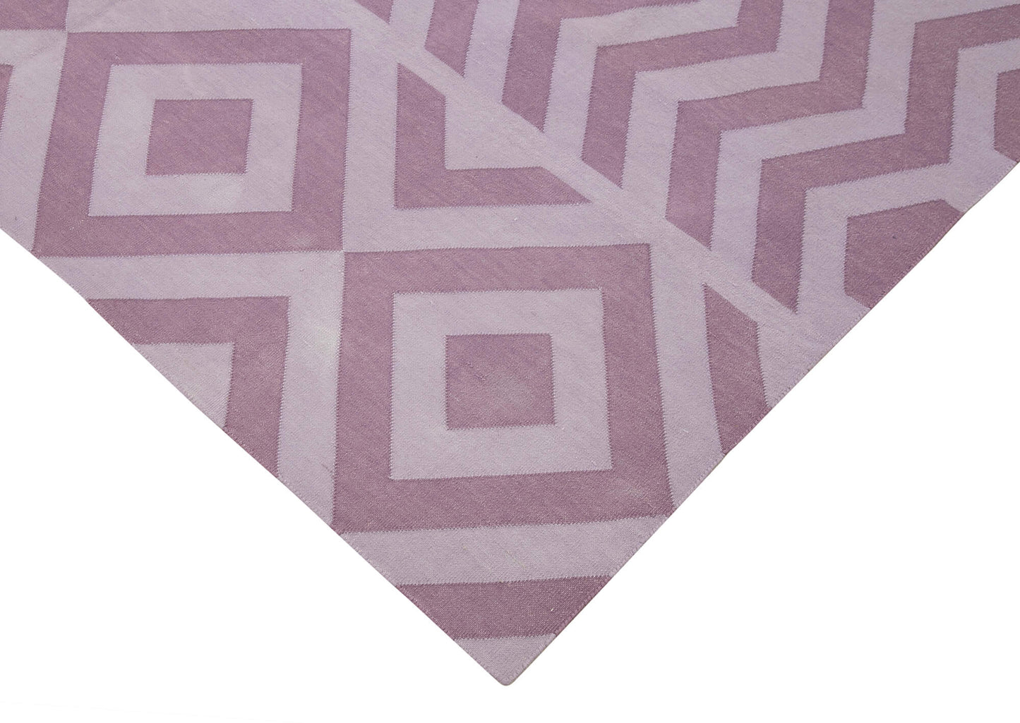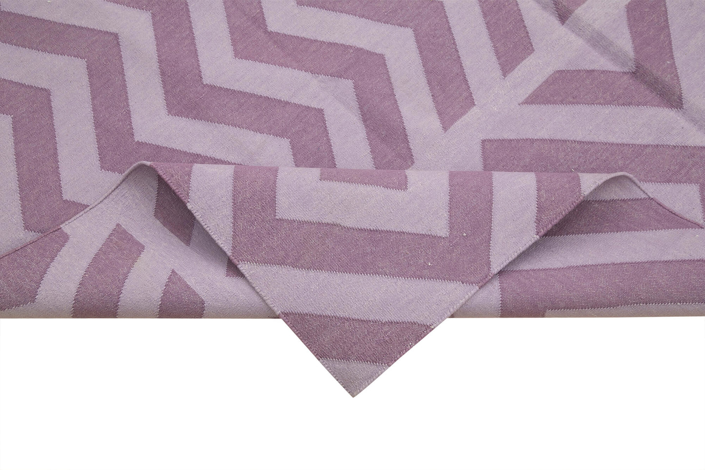 Incorporate this handwoven rug into your home to elevate your interior design. Place it in your living room to anchor your seating area, pairing it with neutral-toned furniture to let the rug's colors shine. In a bedroom, position it under the bed to add warmth and texture, creating a cozy retreat. For a more eclectic look, layer it with other rugs of varying sizes and patterns. The rug's geometric design pairs well with modern, minimalist, or bohemian styles, offering versatility in decoration. Add complementary throw pillows or curtains in shades of purple to create a cohesive look.