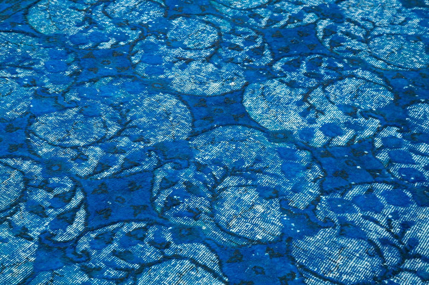 Incorporate this stunning rug into your home decor to create a warm and inviting atmosphere. Place it in a living room with neutral-toned furniture to let the vibrant blue hues stand out, or pair it with complementary colors for a cohesive look. In a dining room, the rug can serve as a bold foundation beneath a wooden table, enhancing the overall aesthetic with its rich texture and color. For a bedroom, position it under the bed to add a layer of luxury and comfort. Accentuate the rug's beauty with decorative pillows and throws in similar shades, or introduce metallic accents for a touch of glamour.