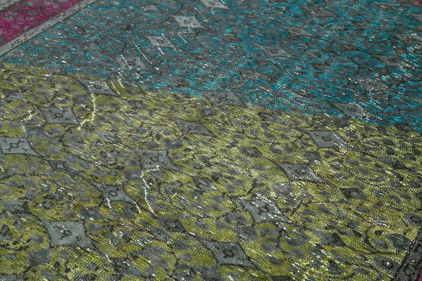 The design of this rug is a harmonious blend of vibrant colors and intricate patterns. Featuring a stunning palette of fuchsia, blue, and green, it creates a captivating visual impact. The thickness of approximately 0.28'' (7.00 mm) adds a plush feel, enhancing comfort and luxury. The weft and warp are skillfully crafted from cotton and wool, providing a robust structure that withstands the test of time. The aged appearance adds a vintage charm, while the bold colors bring a modern twist, making it a versatile piece that complements various interior styles.