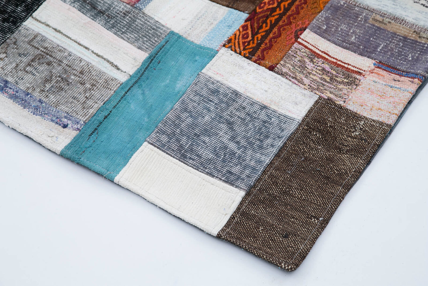 The design of this handwoven rug is a testament to the skill and creativity of its artisans. Each patchwork section tells its own story, combining various patterns and textures to create a harmonious yet eclectic look. The multicolor scheme includes a spectrum of hues, from deep blues and rich reds to soft pastels and earthy tones, allowing it to complement a wide range of interior styles. The intricate weft and warp of cotton and wool provide a robust structure, ensuring the rug's longevity and resilience. Its vintage appeal is enhanced by the subtle signs of aging, which add authenticity and charm.