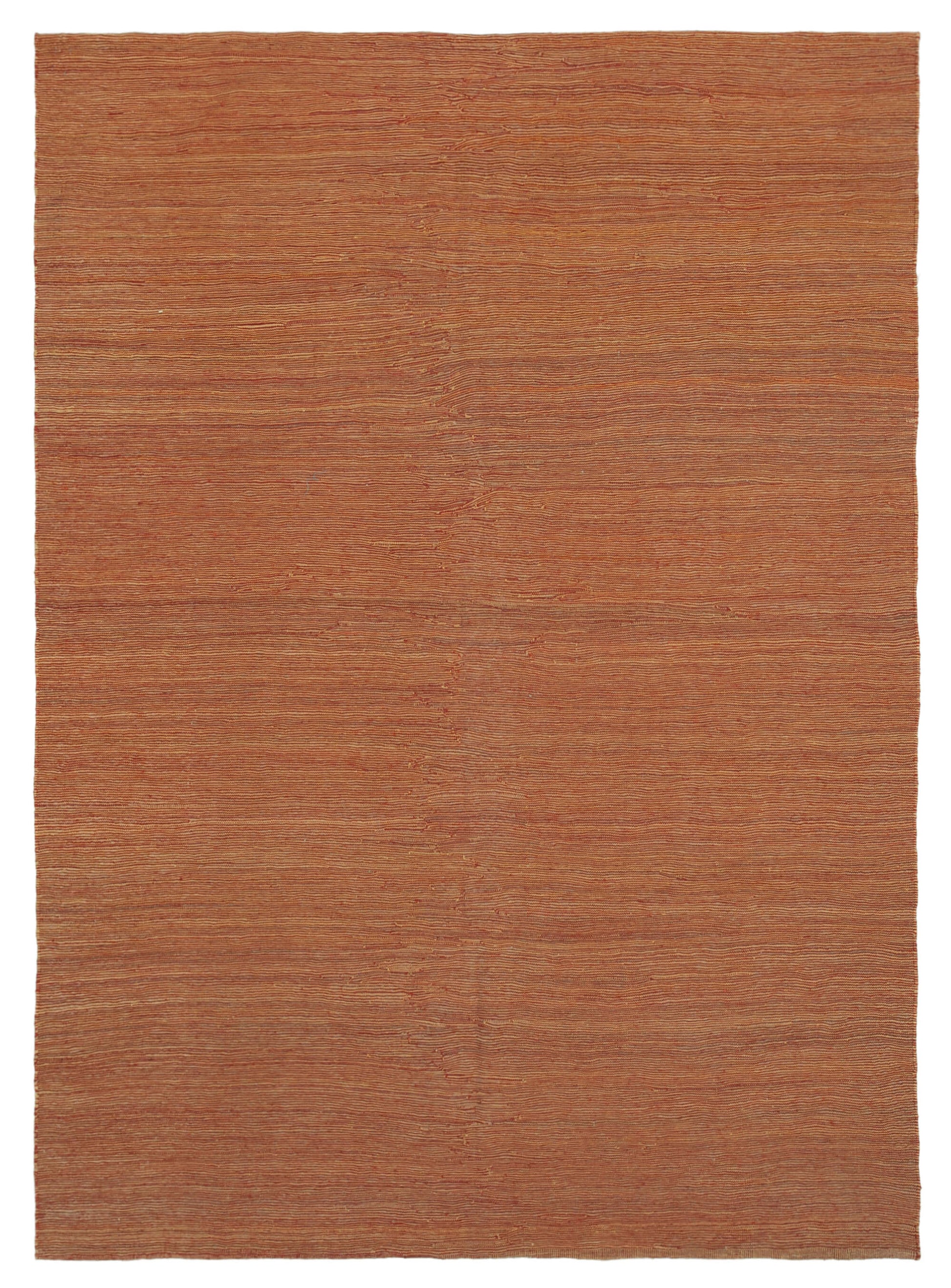 The design of this handwoven rug is a harmonious blend of simplicity and elegance. Its vibrant orange hue exudes warmth and energy, making it an inviting addition to any room. The subtle variations in color and texture highlight the skilled craftsmanship involved in its creation. With a thickness of approximately 0.20'' (5.00 mm), it provides a comfortable cushioning effect while maintaining a sleek profile. The natural wool fibers not only enhance its durability but also contribute to its eco-friendly appeal. This rug is a versatile piece that complements both modern and traditional interiors, adding a touch of sophistication to your home.