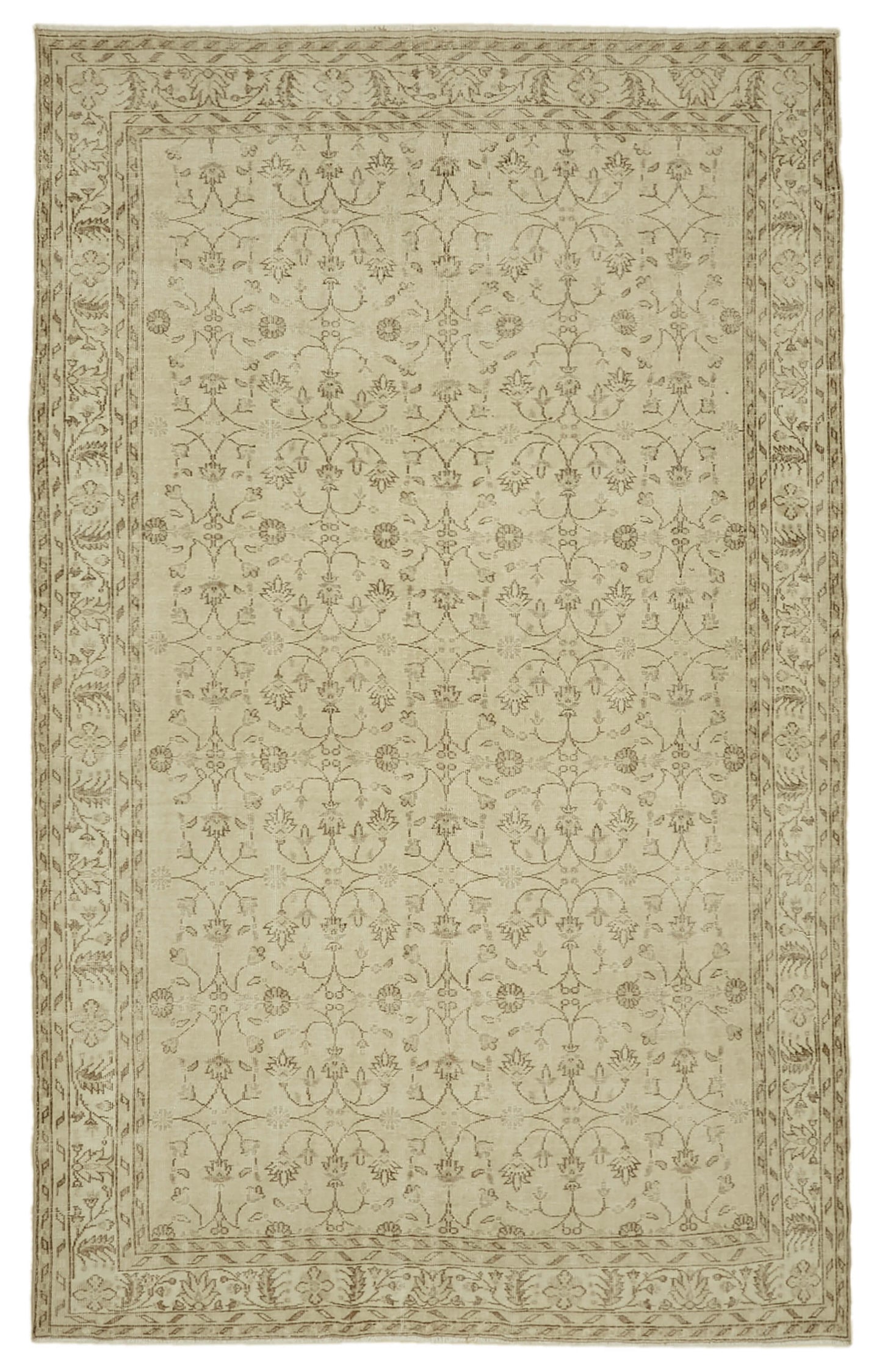 The intricate design of this handwoven rug showcases a delicate pattern that exudes elegance and charm. The weft and warp are meticulously crafted from cotton and wool, creating a durable yet soft texture. The aged appearance, ranging from 30 to 70 years, adds a vintage allure that is both unique and captivating. The rug's thickness of approximately 0.20'' (5.00 mm) ensures a comfortable and luxurious feel, making it an ideal addition to any room. The neutral beige color scheme enhances its versatility, allowing it to seamlessly blend with various decor themes.