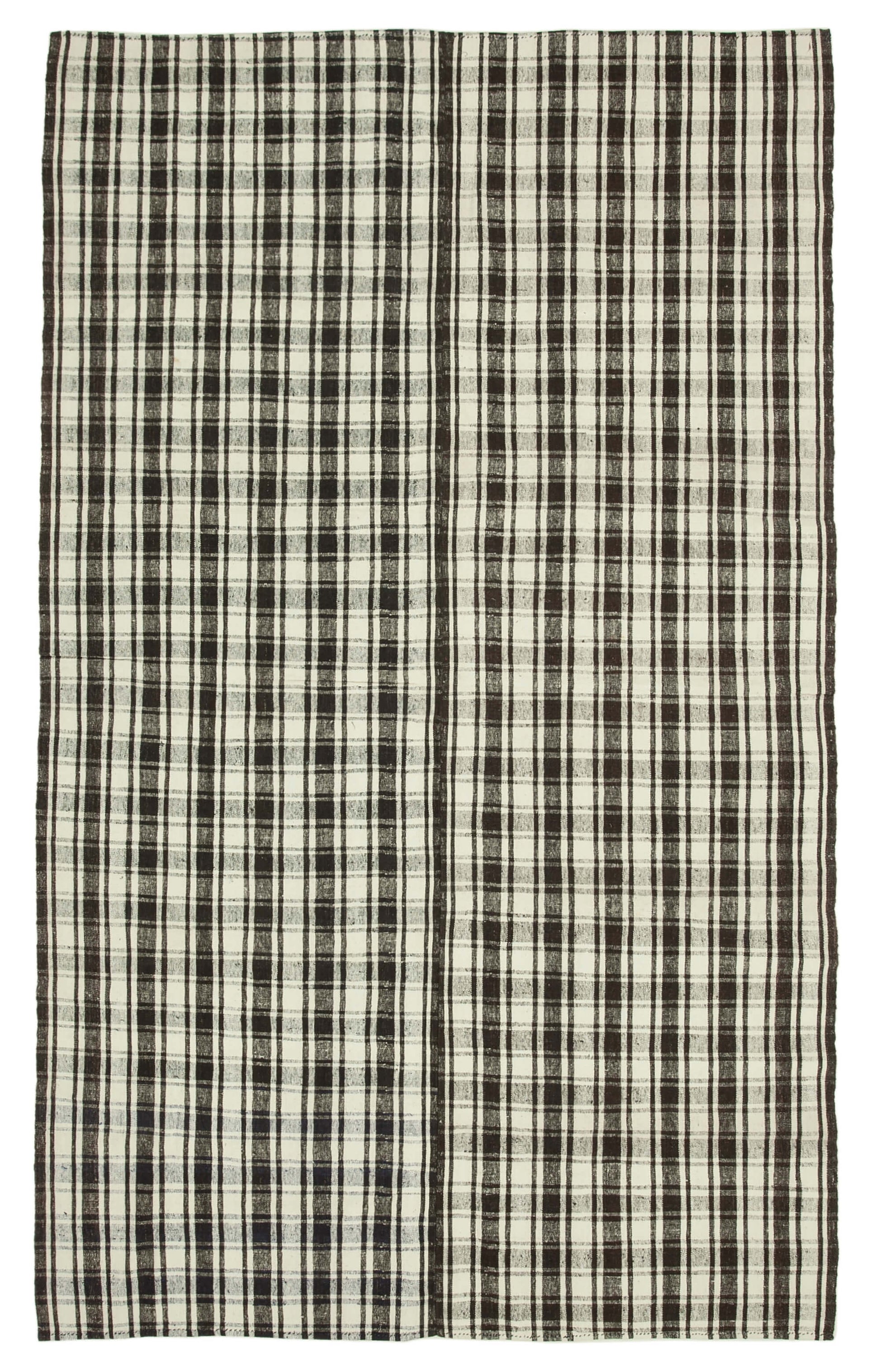 The design of this handwoven rug is a harmonious blend of black and beige tones, creating a striking plaid pattern that is both classic and contemporary. The intricate weft and warp of cotton and wool showcase the skill and artistry of traditional craftsmanship. The neutral color palette allows it to seamlessly integrate into various decor styles, from modern minimalist to rustic charm. Its substantial size makes it a perfect centerpiece for large living rooms, dining areas, or even as a statement piece in a spacious bedroom.