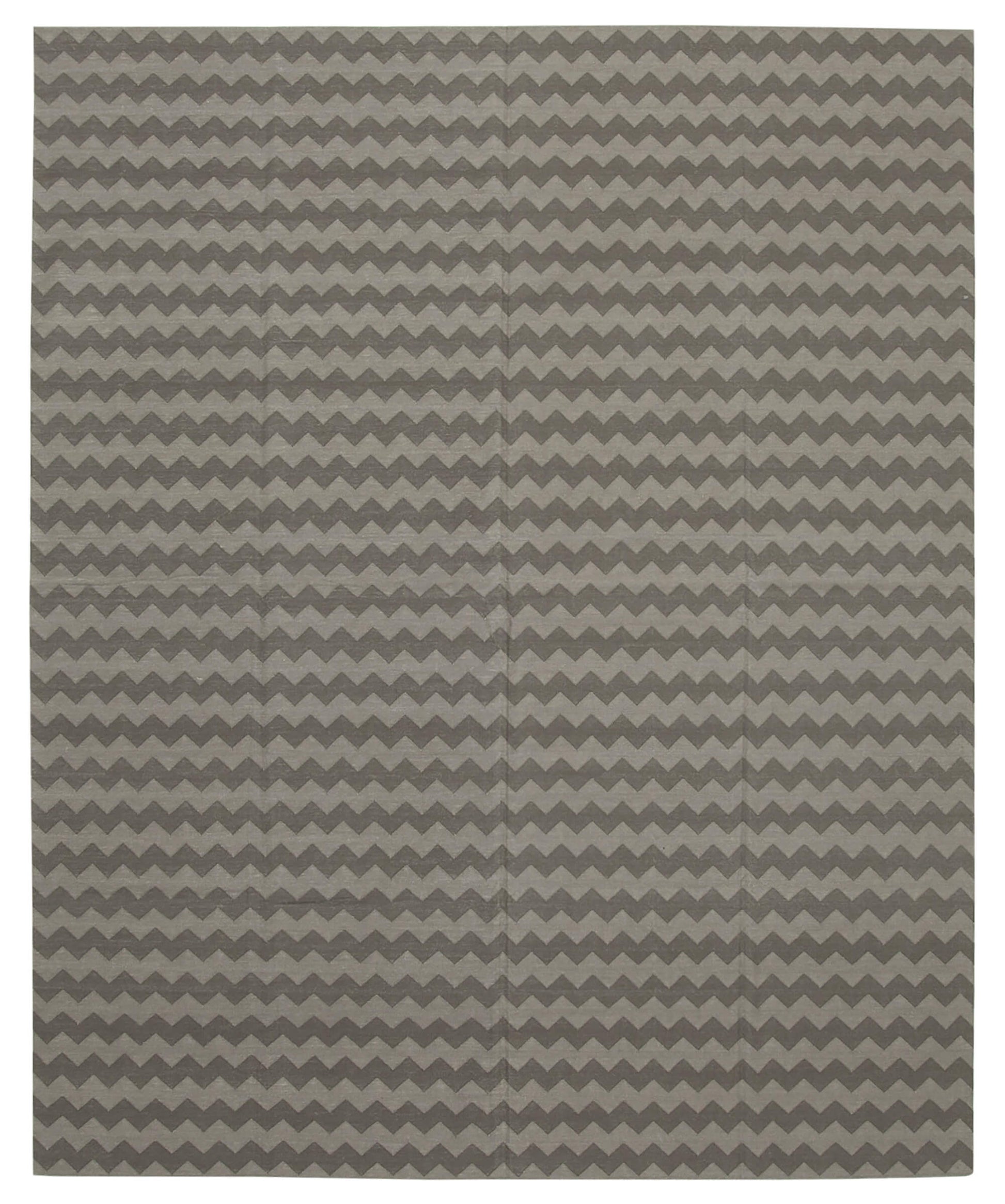 Crafted with precision, this rug measures 9'11'' (301 cm) in length and 7'11'' (242 cm) in width, making it an ideal size for various spaces, from living rooms to bedrooms. The weft and warp are made from a blend of cotton and wool, ensuring durability and a soft texture underfoot. Aged between 10 to 20 years, this rug carries a sense of history and authenticity. Its thickness of approximately 0.24'' (6.00 mm) provides a comfortable cushion while maintaining a sleek profile. The rug features a sophisticated zigzag pattern in shades of brown, adding a touch of elegance and versatility to its design.