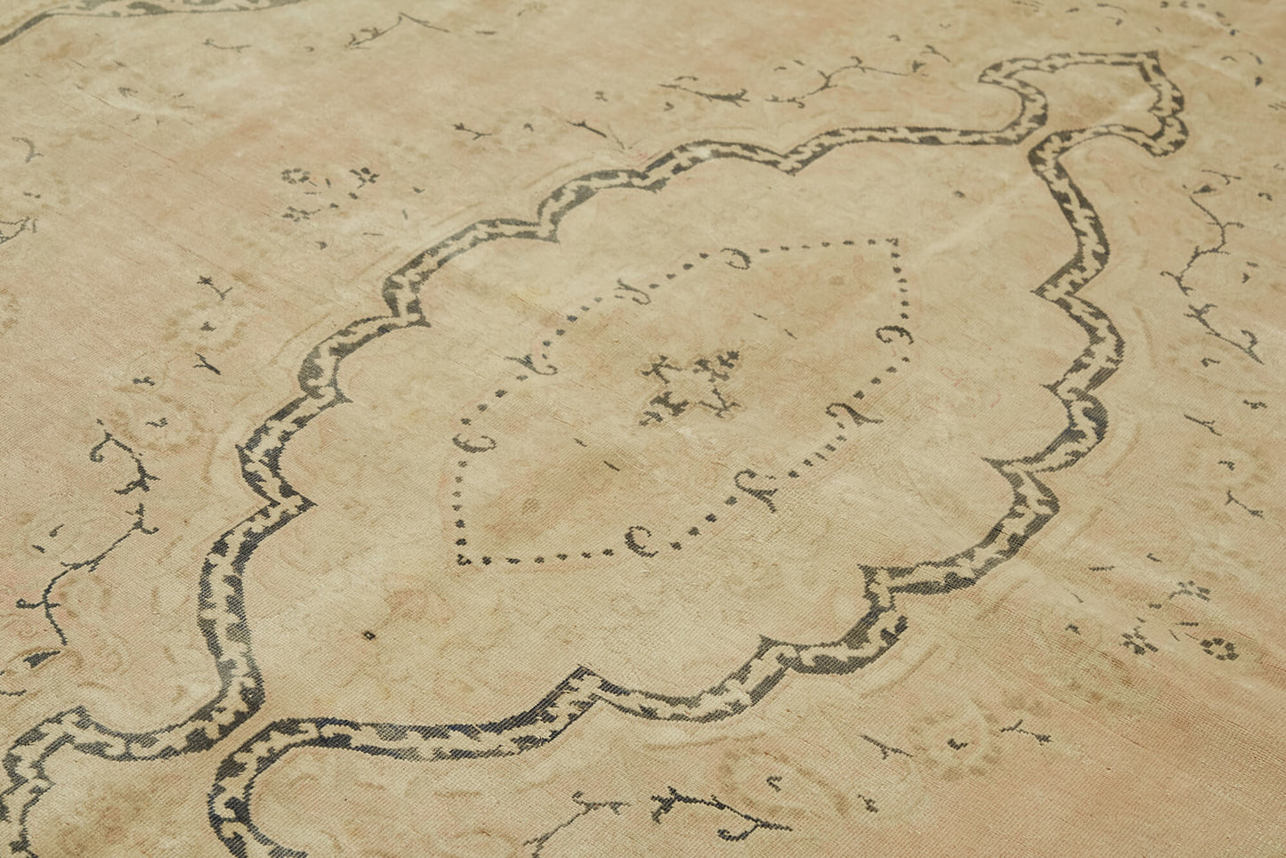 The design of this handwoven rug is a harmonious blend of classic and contemporary elements. The central medallion is surrounded by intricate floral and geometric patterns, all set against a soothing beige background. The border features a delicate interplay of motifs, adding depth and character to the overall design. The use of cotton and wool in the weft and warp not only enhances the rug's durability but also gives it a soft, luxurious feel. The subtle color palette, dominated by beige, allows it to seamlessly integrate into various interior styles, from traditional to modern.