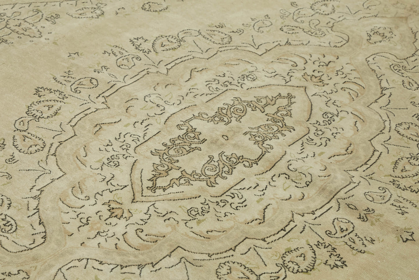 The design of this handwoven rug is a testament to the artistry and skill of its creators. Featuring a harmonious blend of beige tones, the intricate patterns are both elegant and understated, allowing the rug to complement a variety of interior styles. The central medallion is surrounded by delicate floral motifs, framed by a series of ornate borders that add depth and dimension to the overall design. The use of cotton and wool in the weft and warp provides a soft yet resilient texture, ensuring the rug's longevity and beauty for years to come.