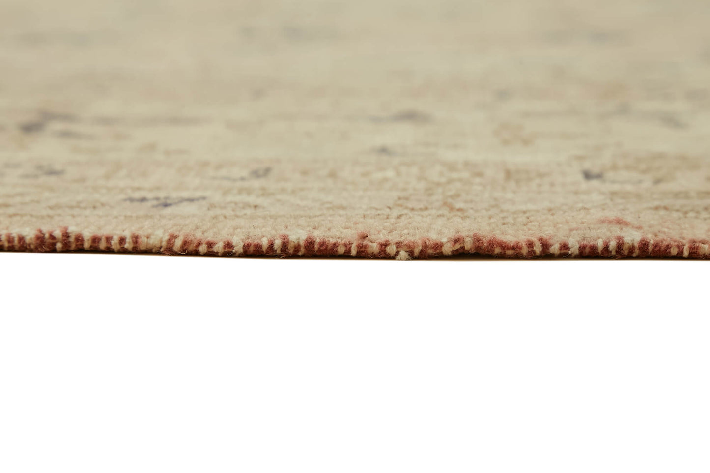 The design of this handwoven rug is a harmonious blend of intricate patterns and subtle colors. Made from a combination of cotton and wool, the weft and warp provide a durable yet soft texture, ensuring comfort underfoot. The rug's thickness of approximately 0.20'' (5.00 mm) adds a plush feel, enhancing its luxurious appeal. The elegant beige tones, complemented by delicate floral motifs, create a serene and inviting atmosphere. This rug is not just a floor covering; it's a piece of art that transforms your space into a haven of style and grace.