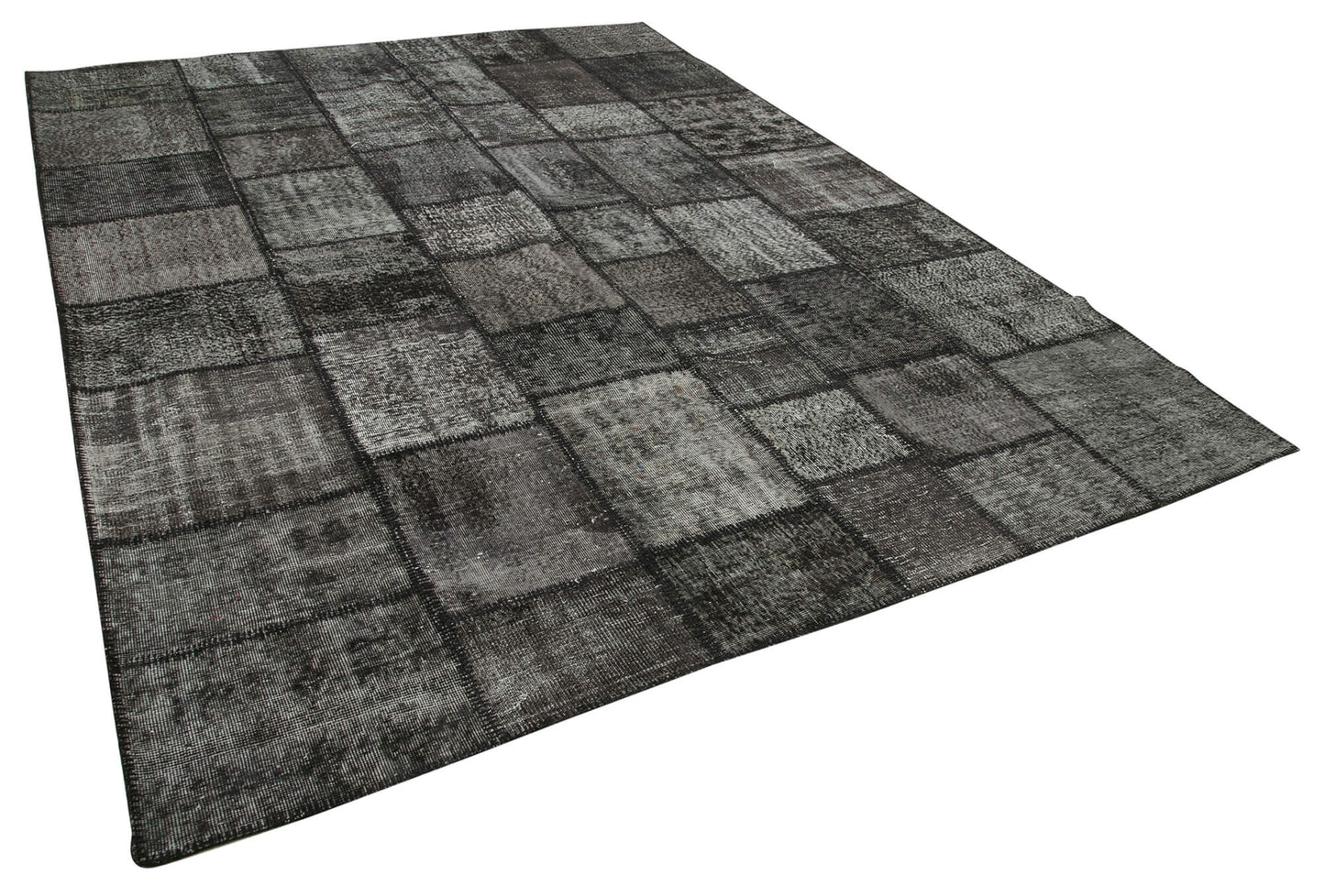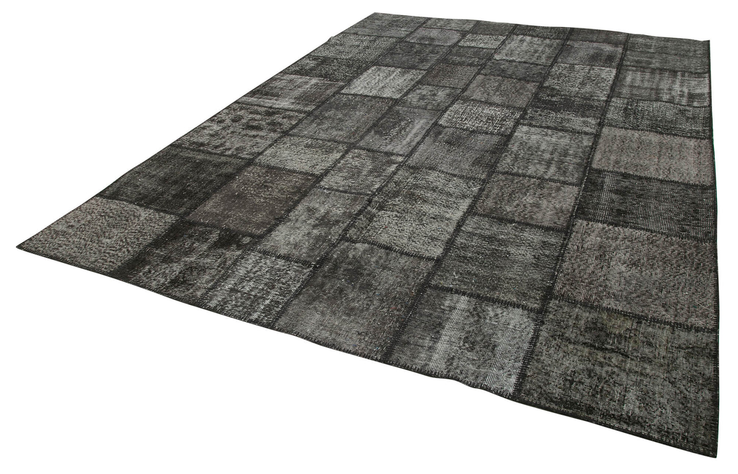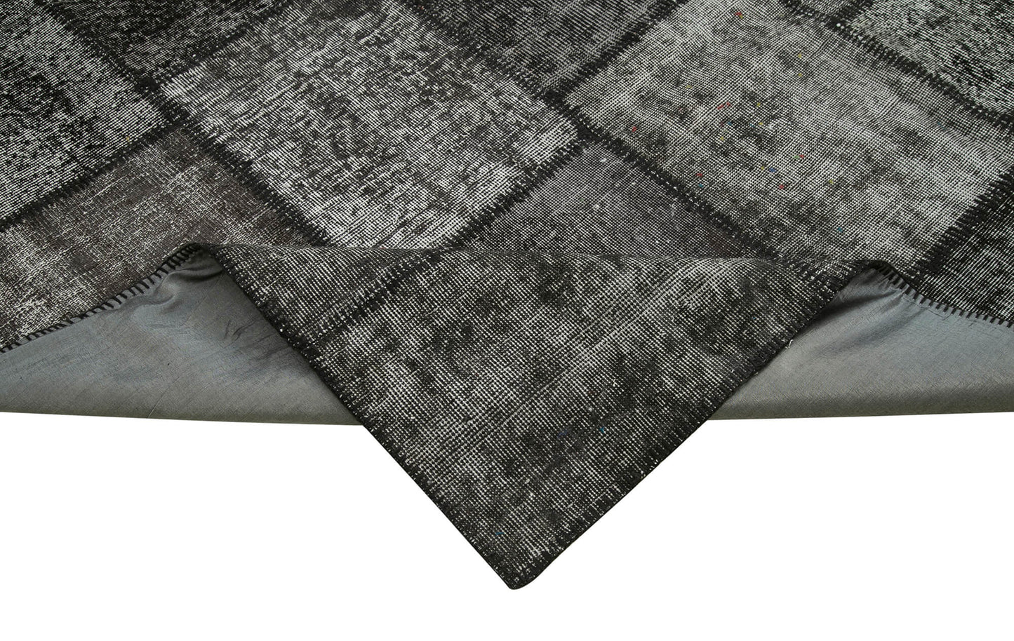 The design of this handwoven rug is a harmonious blend of black and various shades of gray, creating a sophisticated and versatile palette. The patchwork pattern features an array of rectangular and square motifs, each with its own unique texture and tone. This intricate design is enhanced by the rug's thickness of approximately 0.31'' (8.00 mm), providing a plush feel. The combination of cotton and wool in the weft and warp not only adds to the rug's durability but also gives it a luxurious finish. This rug is a perfect example of how traditional techniques can be adapted to suit contemporary tastes.