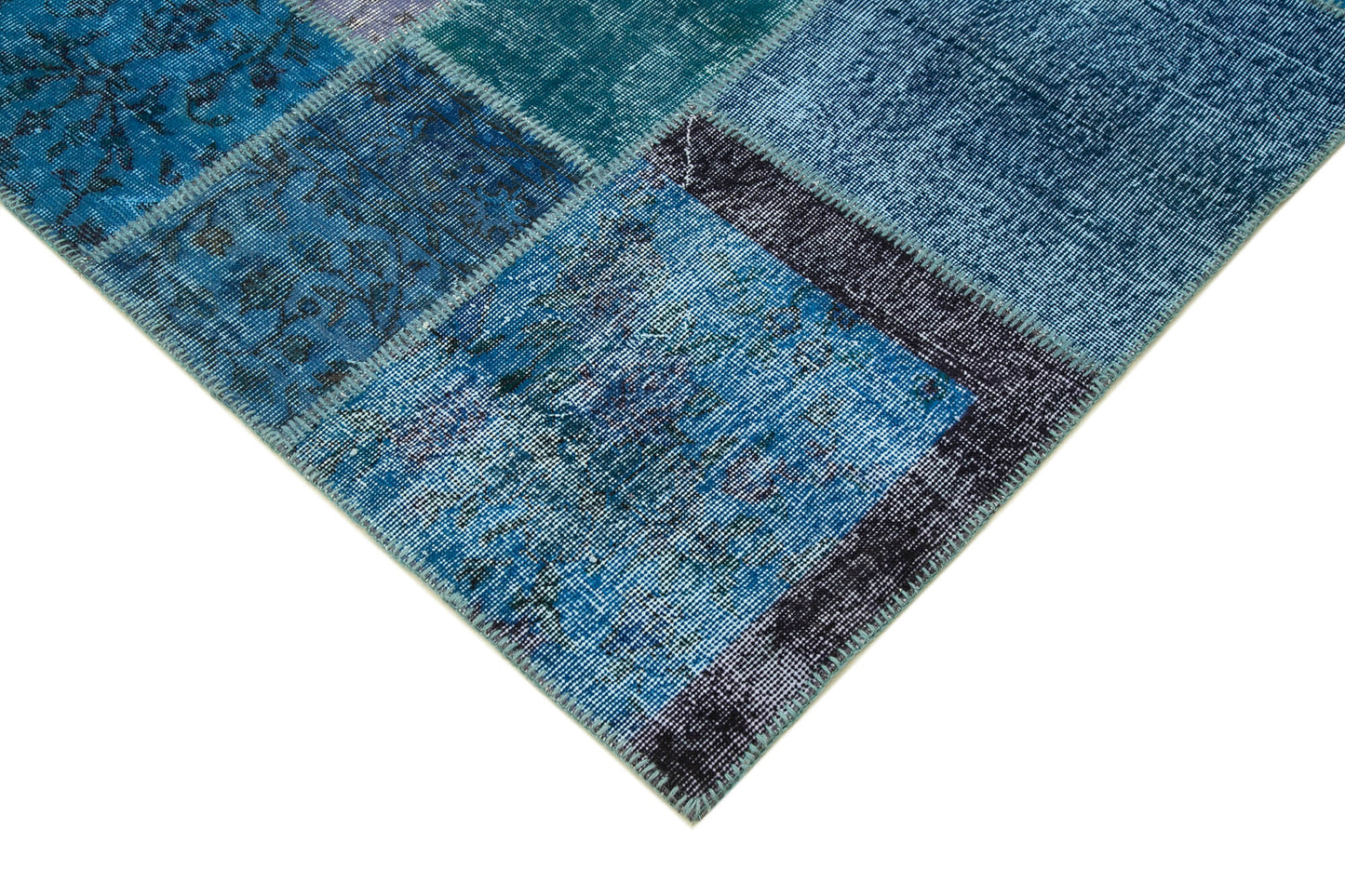 The design of this handwoven rug is a harmonious blend of tradition and modernity. The intricate patterns and patchwork style showcase the skillful artistry of its creators. The cotton and wool weft and warp ensure a soft yet resilient texture, making it perfect for high-traffic areas. The combination of blue and purple tones adds depth and sophistication, while the subtle variations in color and pattern reflect the unique character of each piece. This rug is not just a floor covering; it's a work of art that tells a story of craftsmanship and heritage.