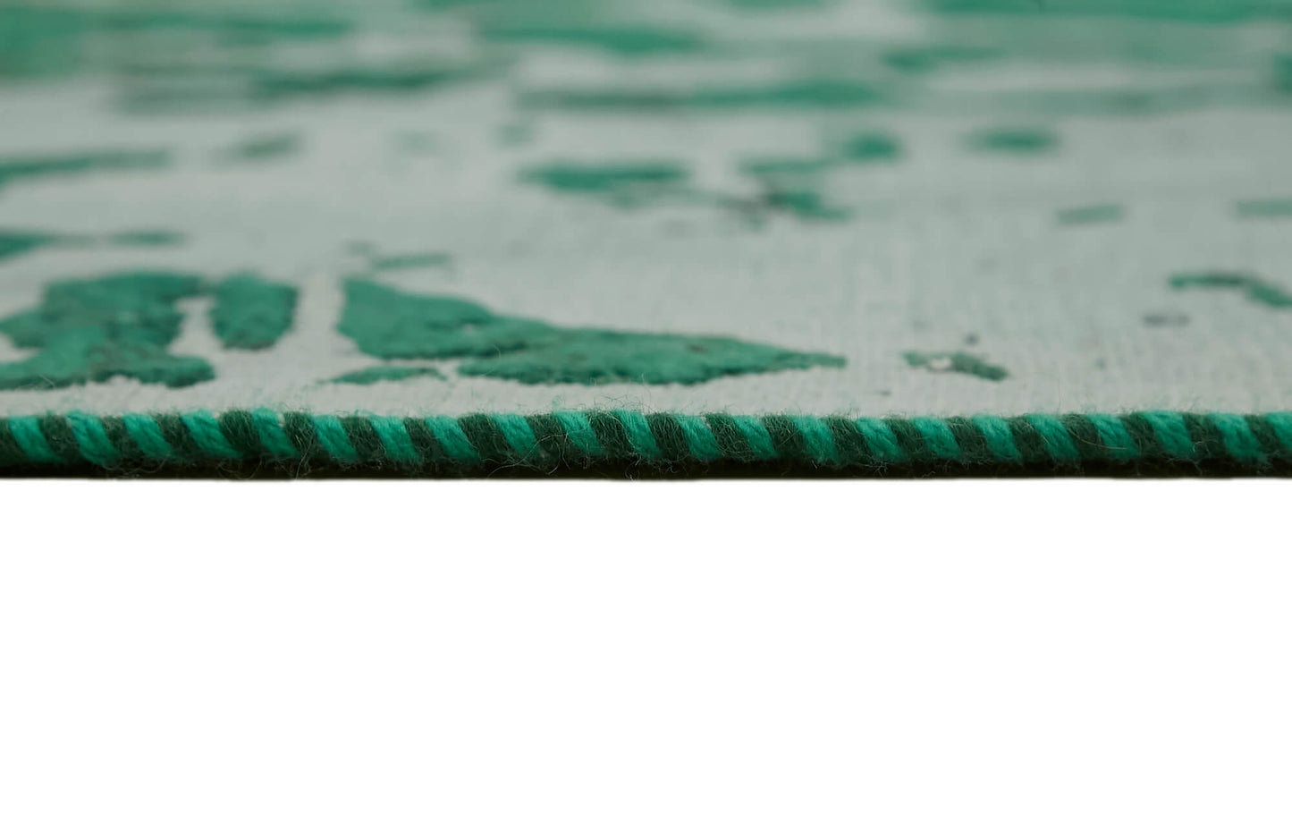 The design of this handwoven rug is a harmonious blend of colors and textures. Featuring a captivating palette of grey and green hues, it effortlessly complements a variety of interior styles, from modern to traditional. The intricate patterns, reminiscent of nature's organic forms, create a dynamic visual appeal that draws the eye and invites admiration. With a thickness of approximately 0.20'' (5.00 mm), the rug provides a comfortable cushioning effect while maintaining a sleek profile. Its robust construction ensures it withstands the test of time, making it a valuable addition to your home decor.