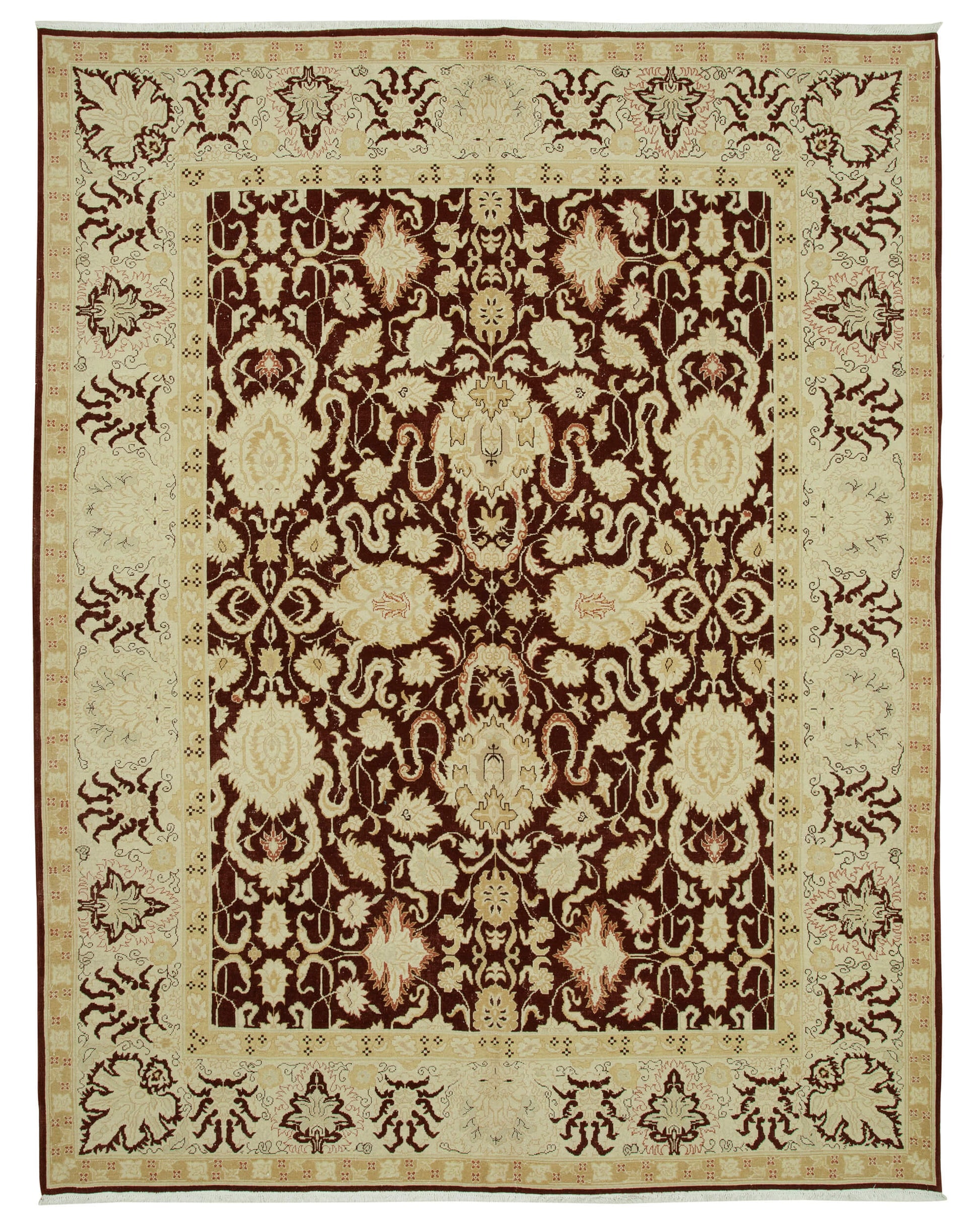 The intricate design of this rug features a harmonious blend of beige and rich brown tones, creating a warm and inviting atmosphere. The central medallion is surrounded by an array of floral and vine motifs, showcasing the artistry and attention to detail that goes into each piece. The border is adorned with complementary patterns, enhancing the overall aesthetic appeal. This rug's color palette and design make it versatile, allowing it to seamlessly integrate into both modern and traditional interiors.