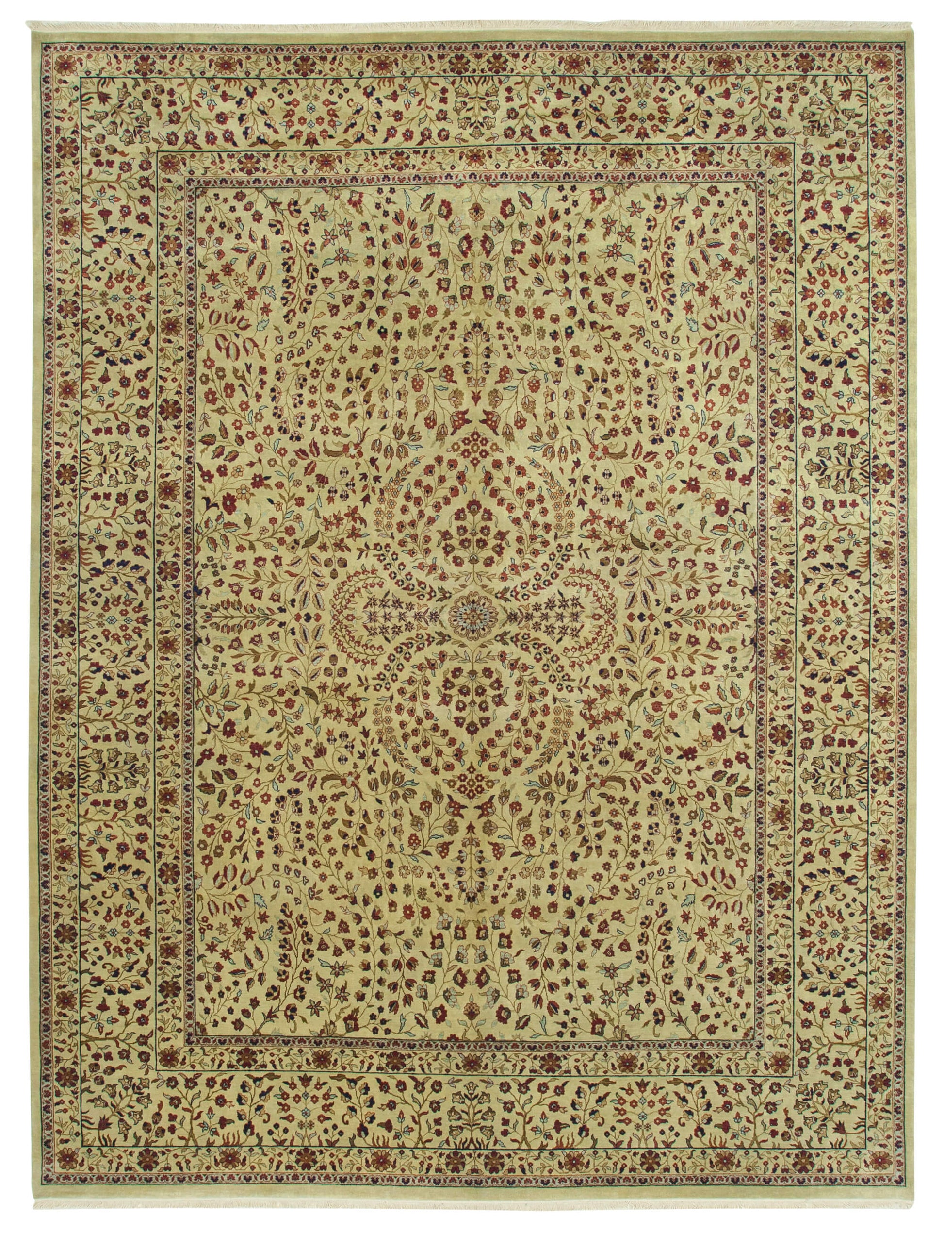 Transform your living space with our exquisite handwoven rug, a masterpiece that combines traditional craftsmanship with timeless elegance. Measuring an impressive 11'8'' (356 cm) in length and 8'8'' (263 cm) in width, this rug is designed to make a statement in any room. Crafted with a blend of cotton and wool, the rug boasts a thickness of approximately 0.31'' (8.00 mm), providing both comfort and durability. With an age of 10-20 years, it carries a rich history and a unique character that only time can bestow. The subtle beige background is adorned with intricate patterns, creating a harmonious blend of colors and textures.