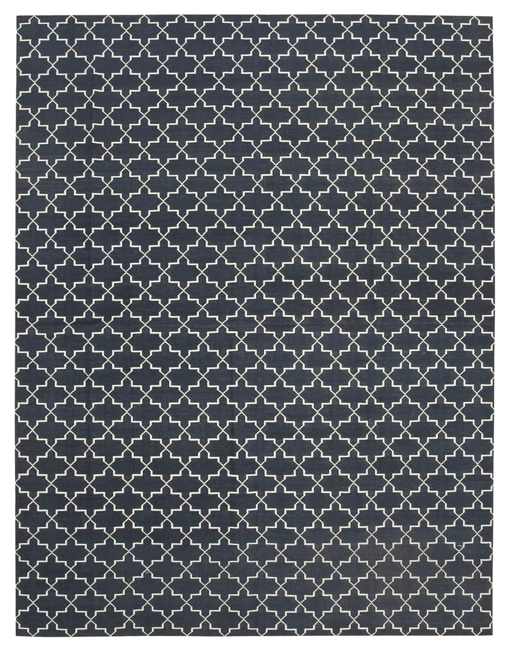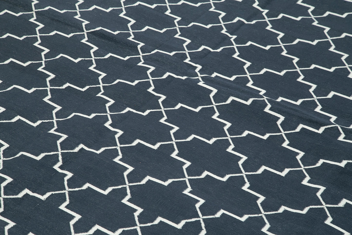 The rug features a striking geometric pattern in black and white, creating a sophisticated and timeless look. The intricate design is both eye-catching and versatile, allowing it to complement a variety of interior styles. The use of high-quality cotton and wool not only enhances the rug's durability but also adds a layer of warmth and comfort. The color palette of black and white is both classic and contemporary, making it easy to integrate into any decor scheme. This rug is not just a floor covering; it's a piece of art that elevates the aesthetic of your space.