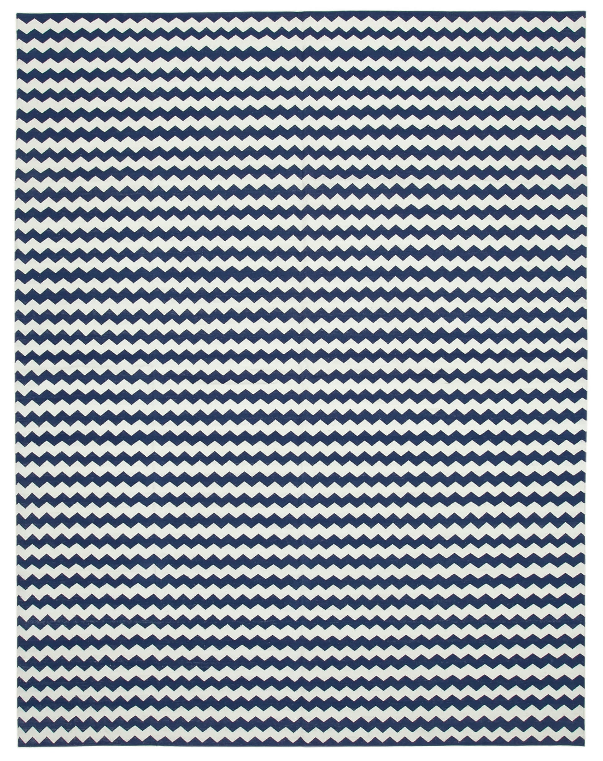 Crafted with meticulous attention to detail, this rug features a striking zigzag pattern in a rich blue hue, complemented by a subtle cream background. The weft and warp are made from a blend of cotton and wool, ensuring durability and a soft texture underfoot. With an age of 10-20 years, this rug carries a sense of history and authenticity. Its thickness of approximately 0.24'' (6.00 mm) provides a comfortable cushioning effect, while the vibrant colors add a touch of sophistication to your decor.