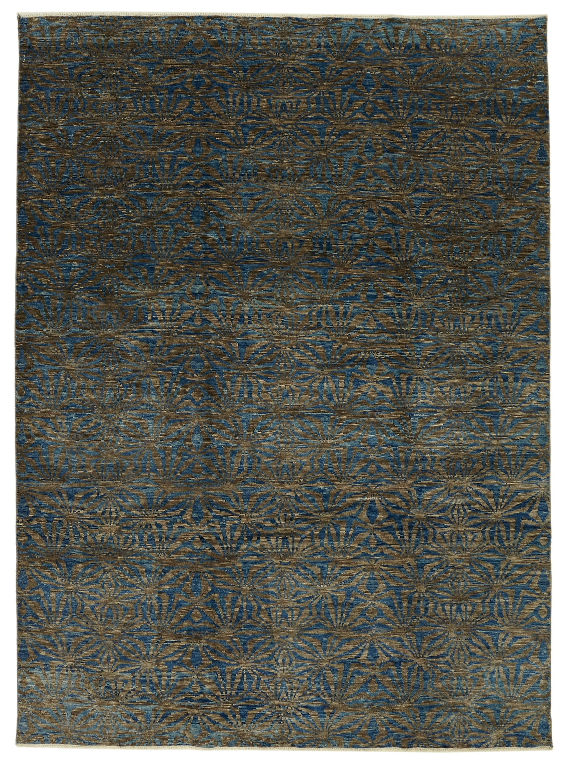 The design of this rug is a harmonious blend of blue and brown hues, creating a sophisticated and versatile palette that complements a variety of interior styles. The intricate patterns are a reflection of the rich cultural heritage and artistic expression of the weavers. The use of cotton and wool in the weft and warp not only enhances the rug's durability but also adds a natural sheen and softness. This rug is not just a floor covering; it is a piece of art that brings warmth and character to your home.