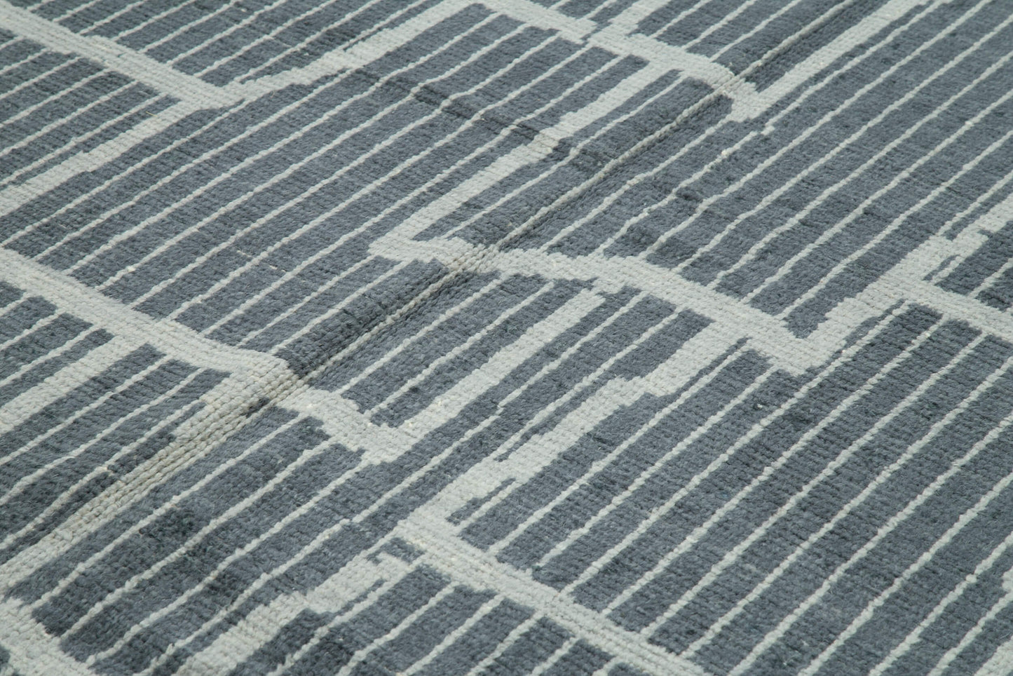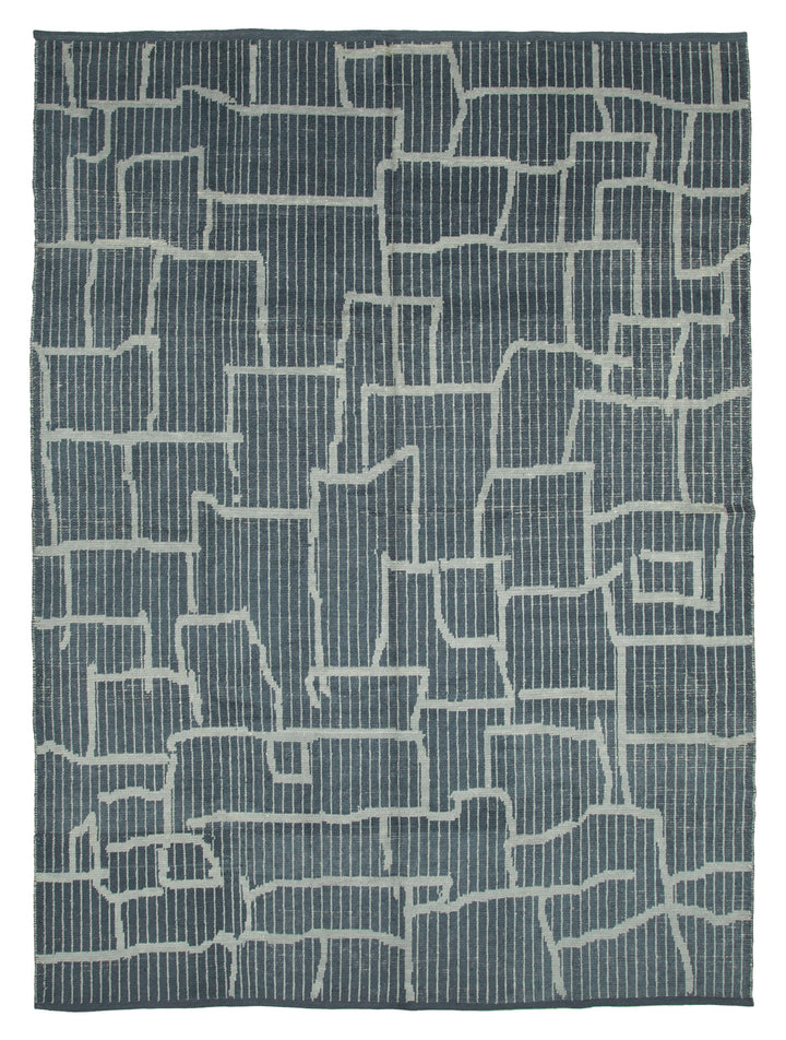 Transform your living space with our exquisite handwoven rug, a masterpiece that combines traditional craftsmanship with modern design. Measuring an impressive 12'5'' (378 cm) in length and 9'1'' (276 cm) in width, this rug is the perfect addition to any room seeking a touch of elegance and sophistication. Crafted from a blend of wool and cotton, the rug boasts a thickness of approximately 0.47'' (12 mm), providing a plush and comfortable feel underfoot. With a rich palette of grey and blue hues, this rug is designed to complement a variety of interior styles, from contemporary to classic.