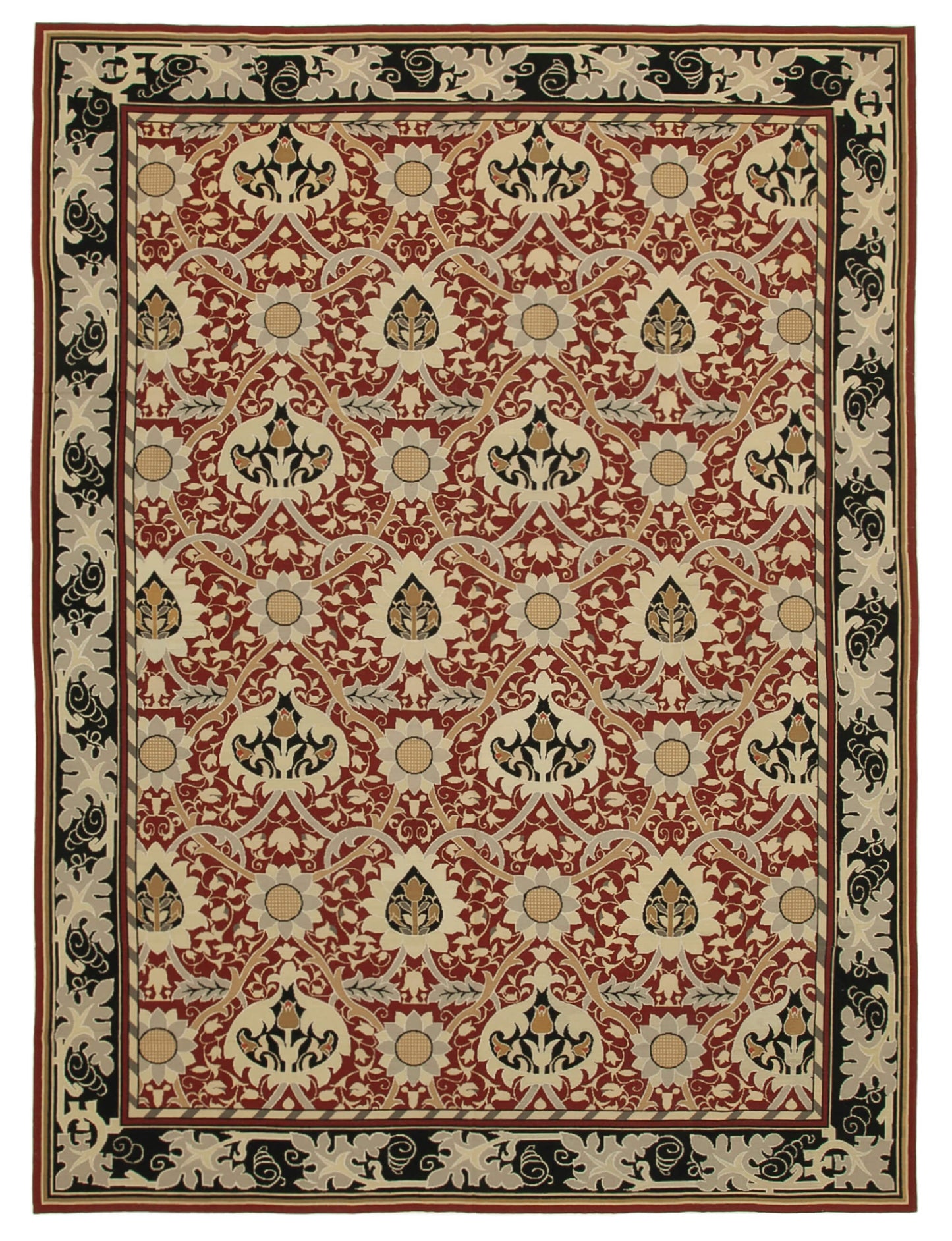 The intricate design of this rug features a harmonious blend of red and beige tones, creating a warm and inviting atmosphere. The central pattern is adorned with elegant floral motifs, surrounded by a sophisticated border that enhances its visual appeal. The use of high-quality cotton and wool ensures vibrant colors and a plush texture. This rug's traditional design is perfect for adding a touch of classic elegance to both modern and traditional interiors.